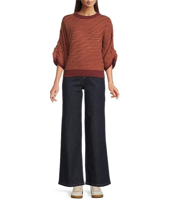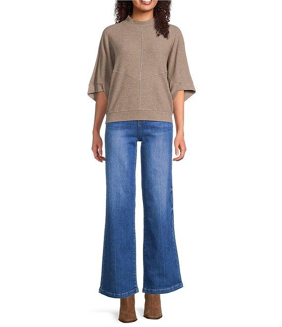 From Bayeas, these jeans feature: Stretch denim fabrication Belt loops 5 pocket styling Removable belt Wide leg Ankle length Front button and zipper closure Approx. 31" inseam Cotton/polyester/spandex Machine wash Imported.