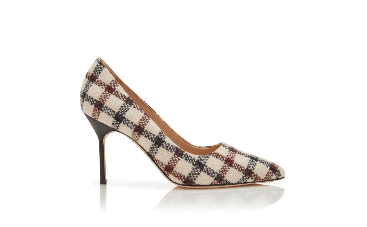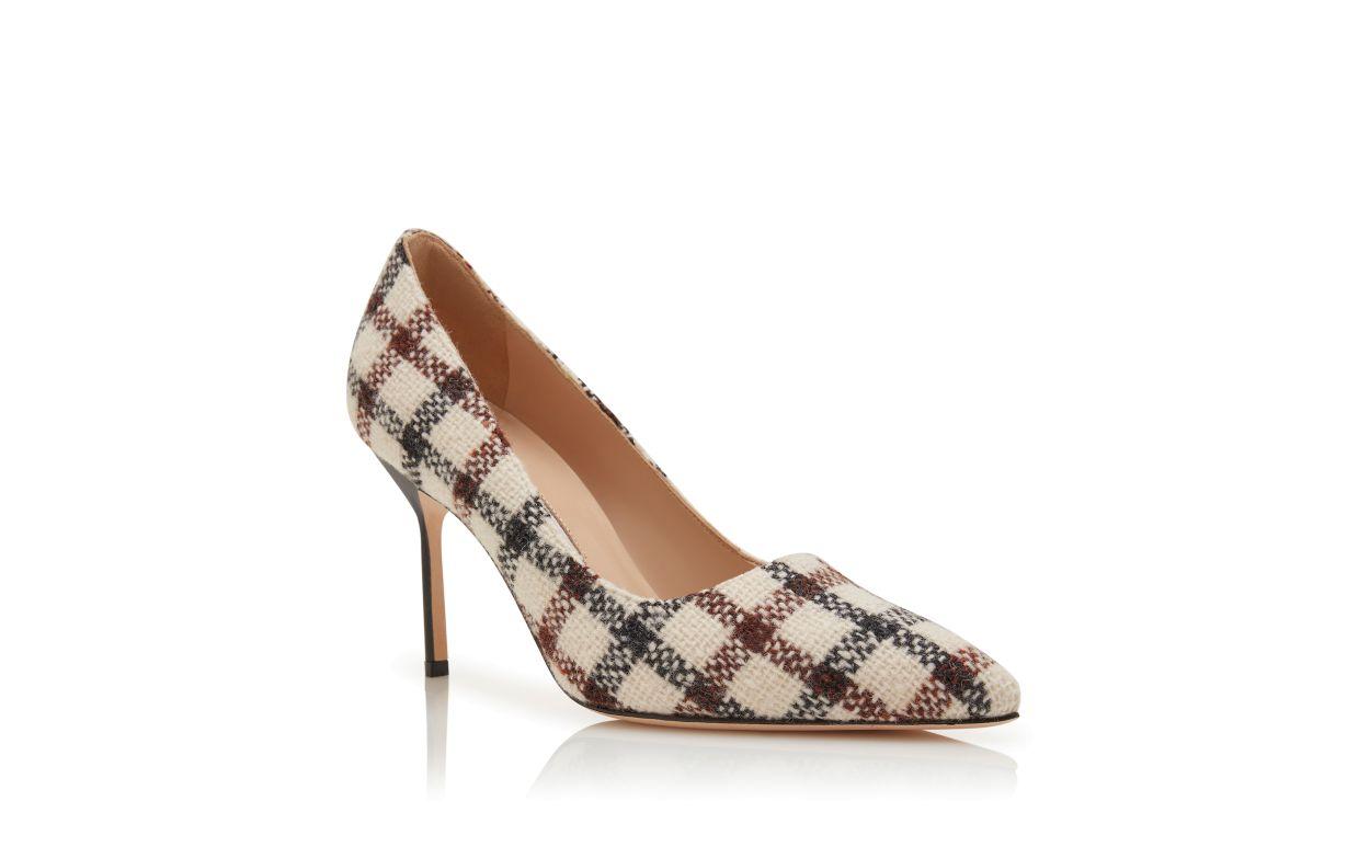 BB 90 Light Beige Wool Tartan Pointed Toe Pumps