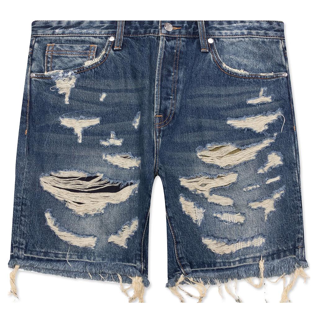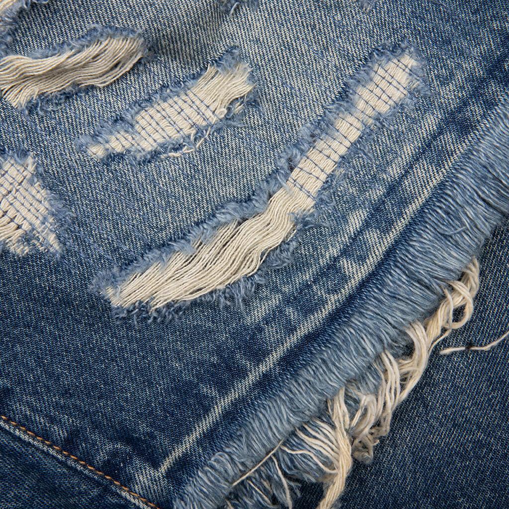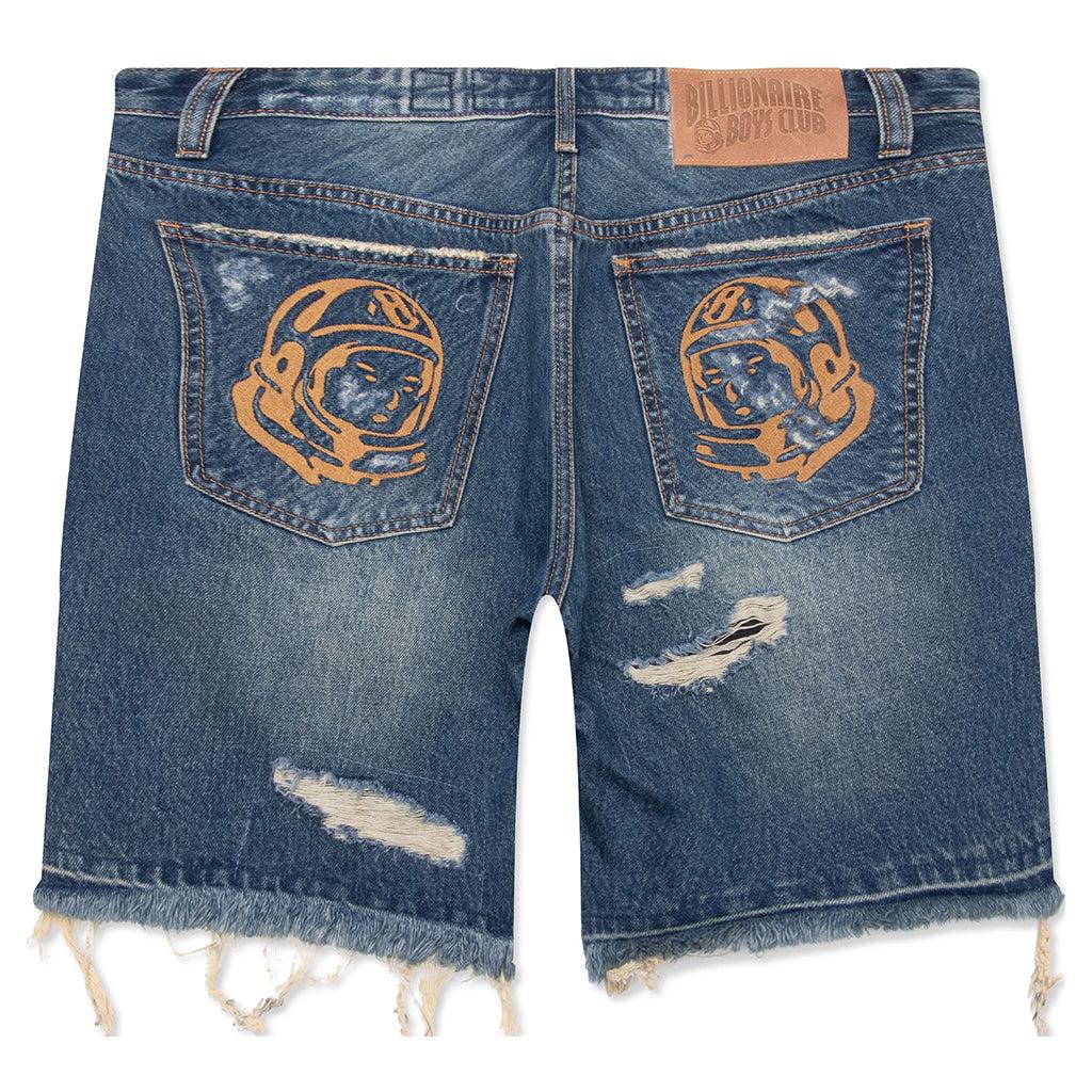 The BB Chronos Jean Shorts feature a classic five-pocket design with distressed detailing throughout, offering a worn-in aesthetic with thoughtful edge. Helmet embroidery at the back pockets adds a subtle branded element, while a frayed hem and custom jacron label complete the design with a nod to timeless denim construction. 5-pocket design Distressed detailing Zip fly with button closure Helmet embroidery on back pockets Custom jacron label Custom hardware Frayed hem Style No: 851-3102-700