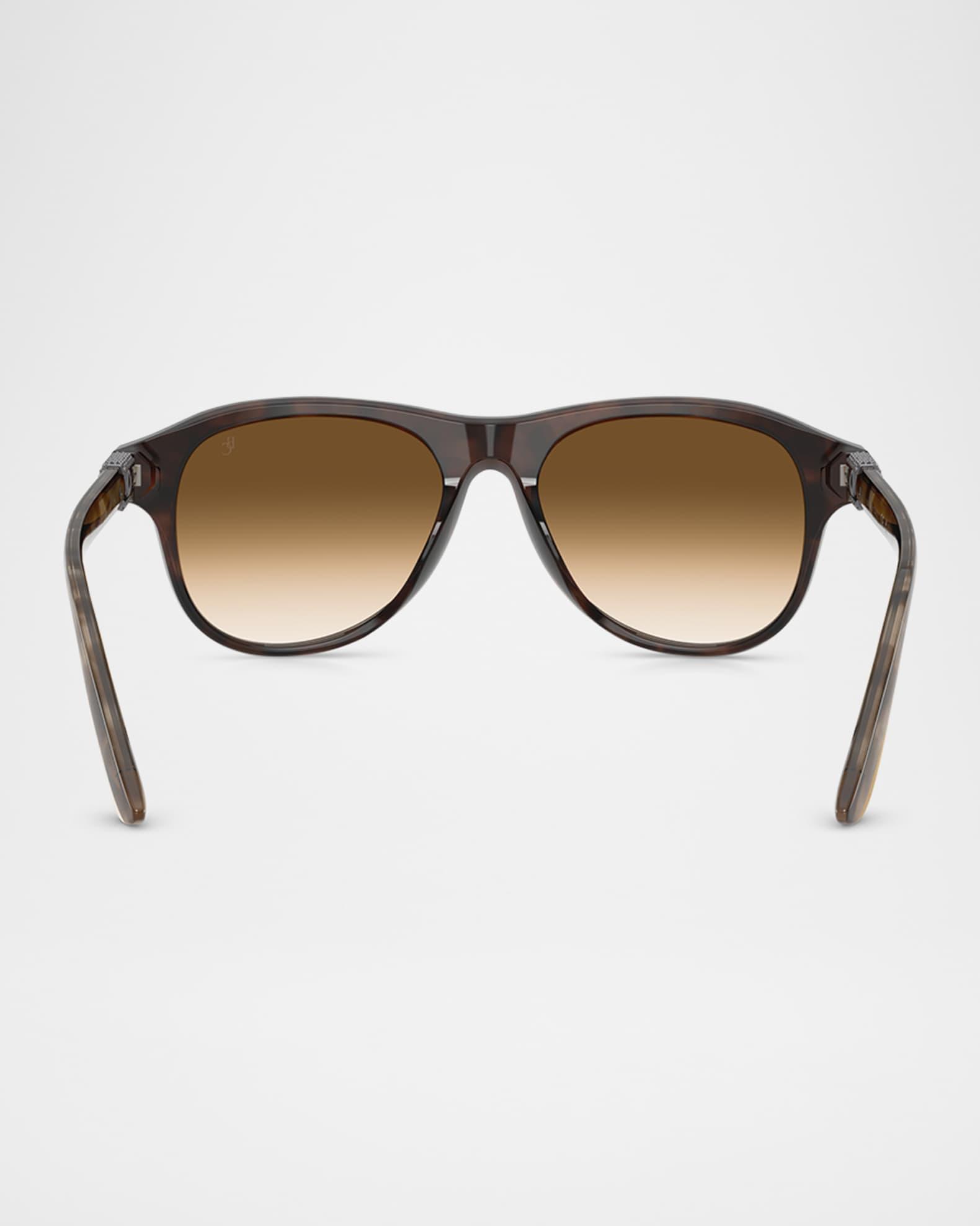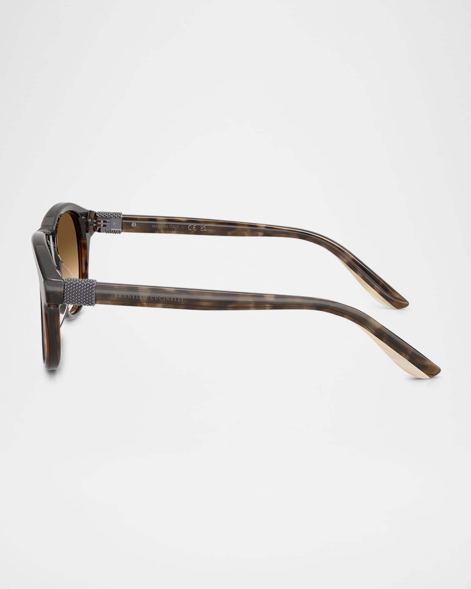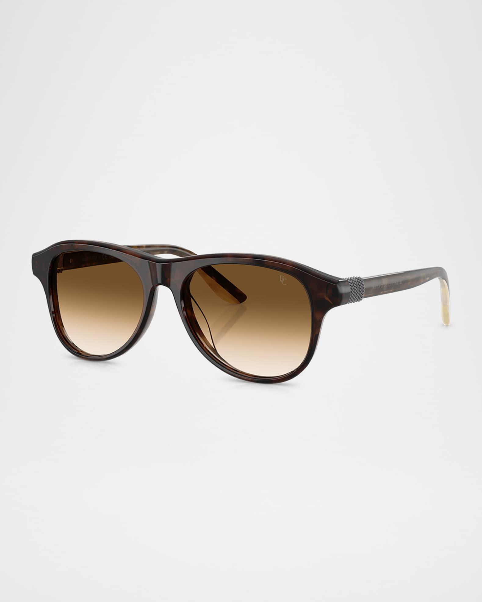Brunello Cucinelli "BC4015S" aviator sunglasses in acetate Lens/bridge/temple (in mm): 53-16-145 Gradient lenses Saddle nose bridge Thin, tapered arms Comes with case and cloth Acetate Spot clean 100% UVA/UVB protection Made in Italy Proposition 65 warning for California residents