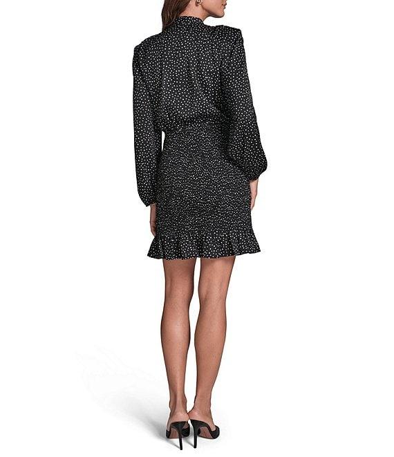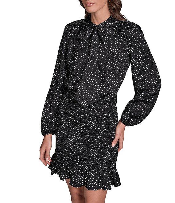 BCBG Polka Dot Satin Smocked A-Line Mini Dress