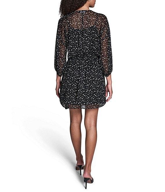 BCBG Printed Chiffon Side Knot Shift Mini Dress