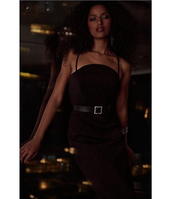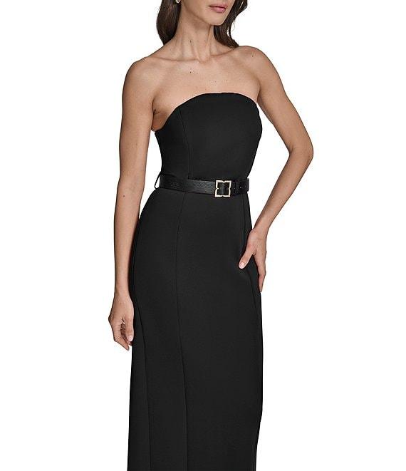 BCBG Scuba Strapless Belted Sleeveless Sheath Maxi Dress
