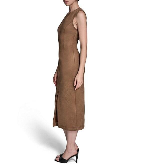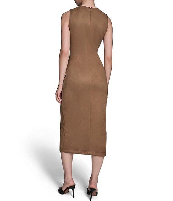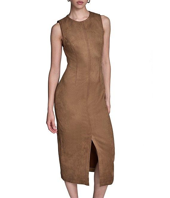 BCBG Sleeveless Suede Midi Sheath Dress