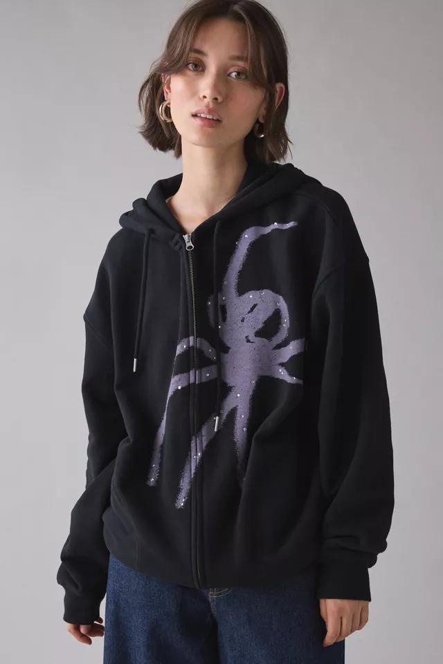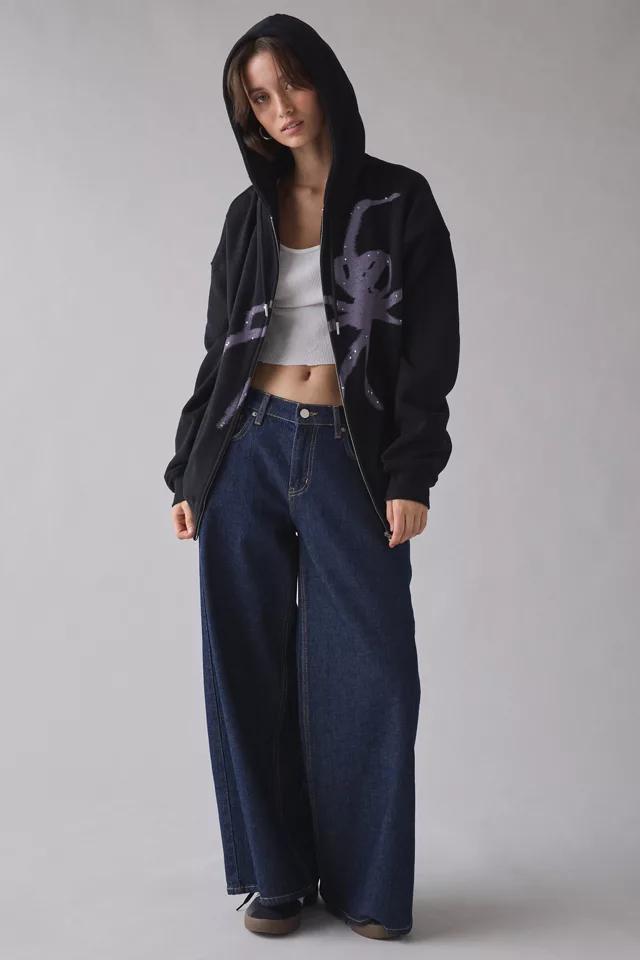 - BDG Dusty spider graphic oversized zip-up hoodie sweatshirt