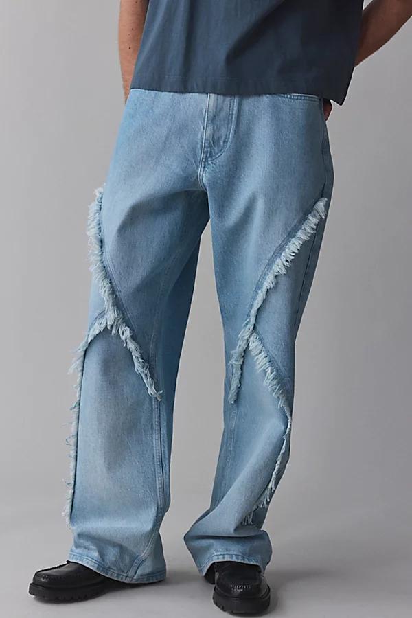 BDG Nitro baggy skate fit jeans In a relaxed 90s-inspired silhouette with wide leg openings. Updated style with frayed trim detailing. Finished with classic 5-pocket styling, belt loops and BDG logo tag. Urban Outfitters exclusive. Features BDG Nitro frayed trim baggy fit jean 5-pocket construction Button closure 5-pocket construction Frayed trim detailing UO exclusive Content + Care 99% Cotton, 1% spandex Machine wash Imported Size + Fit Model in Vintage Denim Light is 61 and wearing size 32 Measurements taken from size 32 Rise: 11.5 Inseam: 33 Leg opening: 11 BDG Nitro Frayed Trim Baggy Fit Jean in Light Indigo, Mens at Urban Outfitters