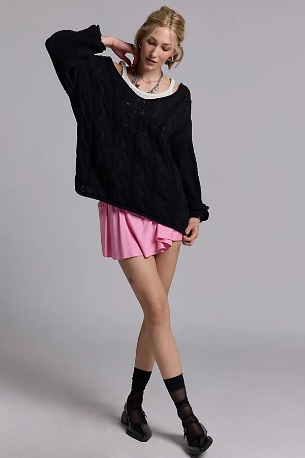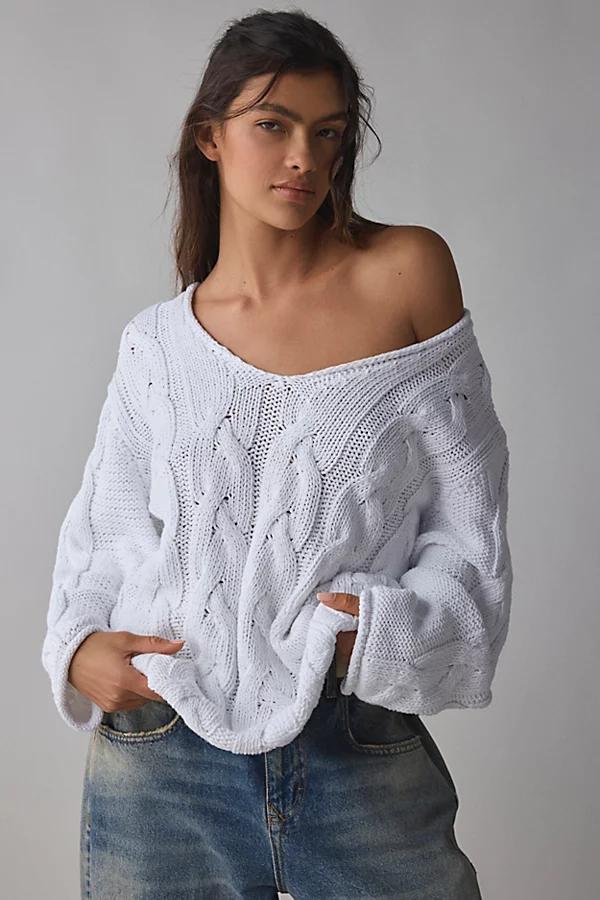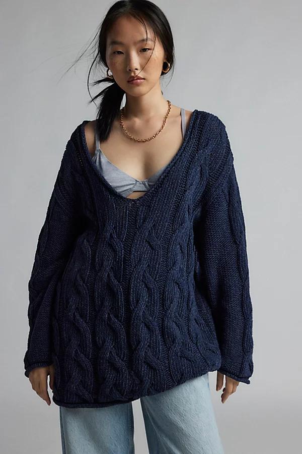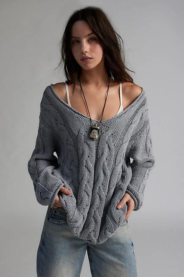 So cozy BDG sweater in an oversized silhouette. Designed in a cable knit front with a wide v-neckline and rolled-hem finishings. Only at Urban Outfitters. Features BDG Skylar oversized cable knit pullover sweater Slouchy wide neckline sweater Wide v-neckline with drop shoulders and long-sleeves Large-scale cable knit front and sleeves Rolled-edge detailing and hem Oversized fit Tunic length UO exclusive Content + Care 55% Recycled cotton, 45% recycled polyester Machine wash Imported Size + Fit Model in Ivory is 510 and wearing size Small Measurements taken from size Small Chest: 38 Length: 28 BDG Skylar Oversized Cable Knit Sweater in Ivory, Womens at Urban Outfitters