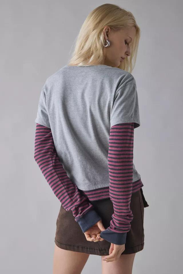 90s-inspired BDG long-sleeve tee in a slouchy & cropped fit for a relaxed vibe. Featuring a crew neckline & cap sleeve tee with a contrasting long-sleeve for an effortless layered look. Find this better-than-basic t-shirt only at Urban Outfitters.