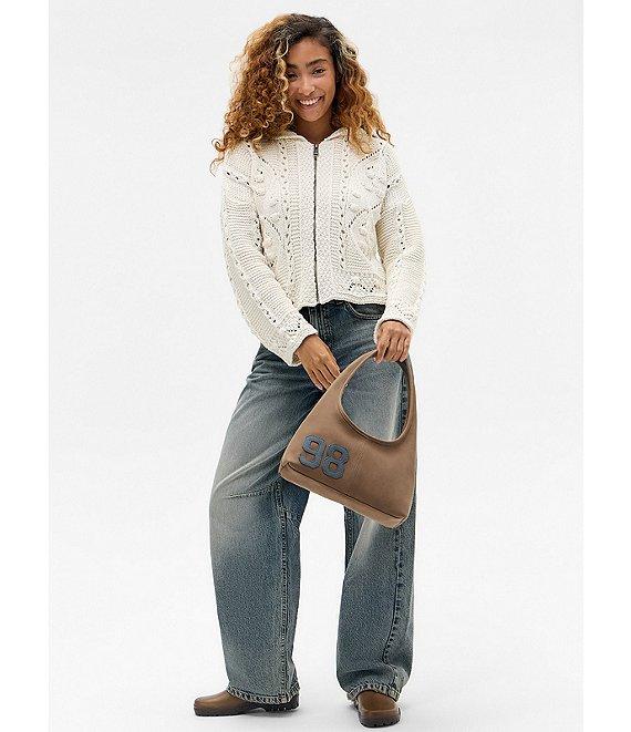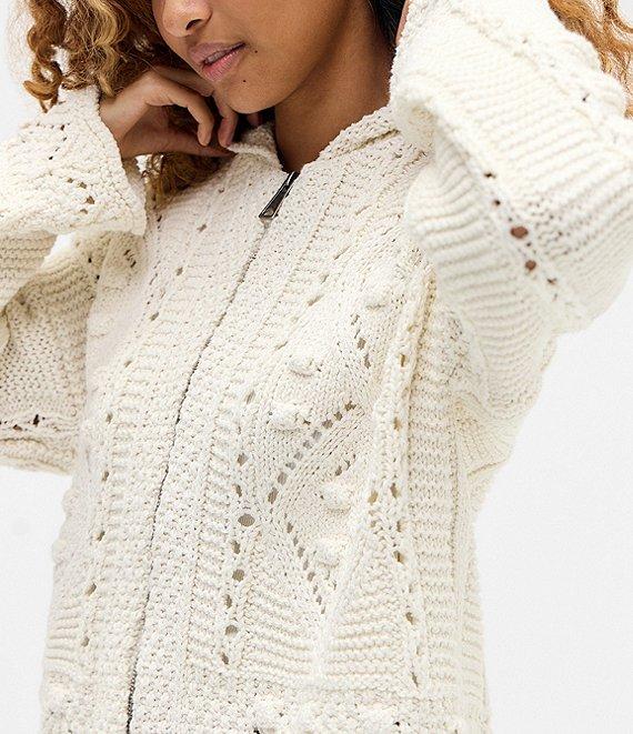BDG Urban Outfitters Crochet Knit Zip Front Hoodie Sweater