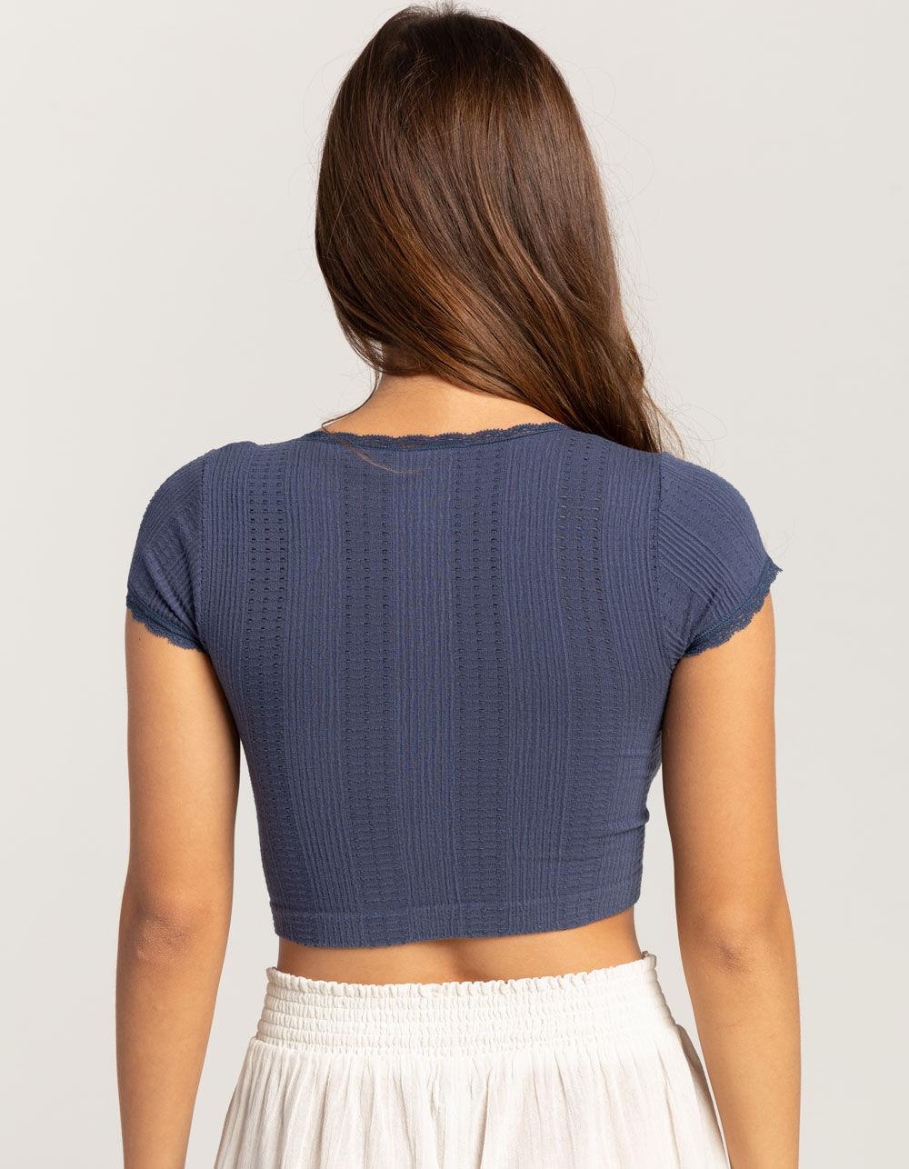 BDG Urban Outfitters Going For Gold Womens Pointelle Tee - BLUE