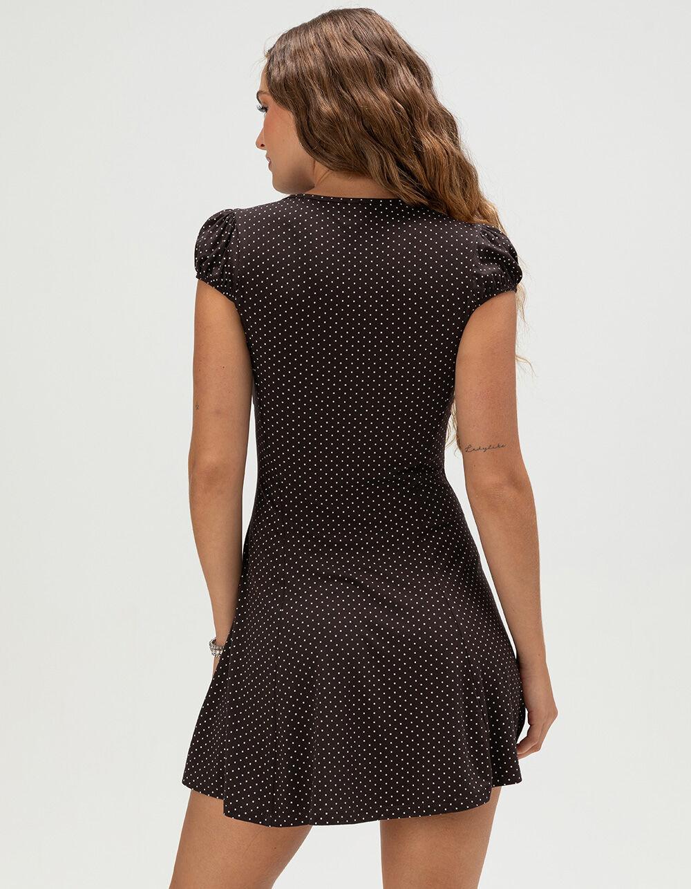 BDG Urban Outfitters Kiki Button Front Dress. The BDG Kiki Button Front Dress is a playful yet effortlessly chic piece that’s perfect for sunny days and casual outings. Featuring an allover polka dot pattern for a timeless, vintage-inspired look, this dress is designed with a flattering V-neckline and a sleeveless cut that keeps it cool and breezy. The lined bust provides added comfort and coverage, while the functional button front closure adds both charm and convenience. Falling to an approximate length of 28 inches, it’s the ideal mini dress for pairing with sneakers for a laid-back vibe or sandals for a touch of feminine flair. 95% Viscose 5% Elastane. Lining: 100% Polyester. Machine wash. Imported.