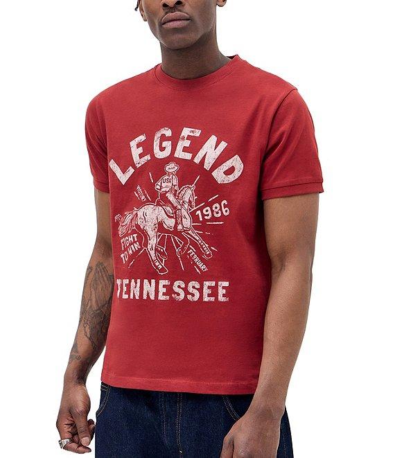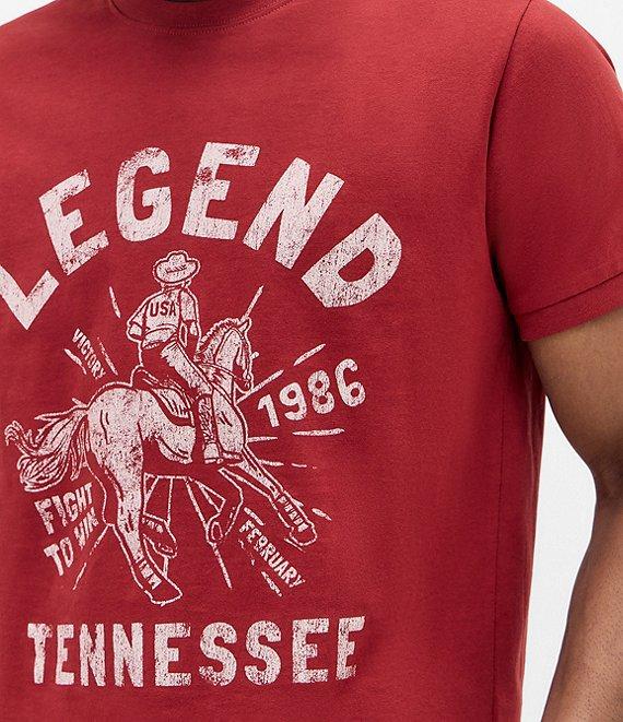 From BDG Urban Outfitters, this t-shirt features: Crew neckline Short sleeves A cowboy "riding" horseback graphic plus "Legend" and "Tennessee" verbiage on the front Square hem Pullover construction Cotton knit Machine wash/line dry Imported.