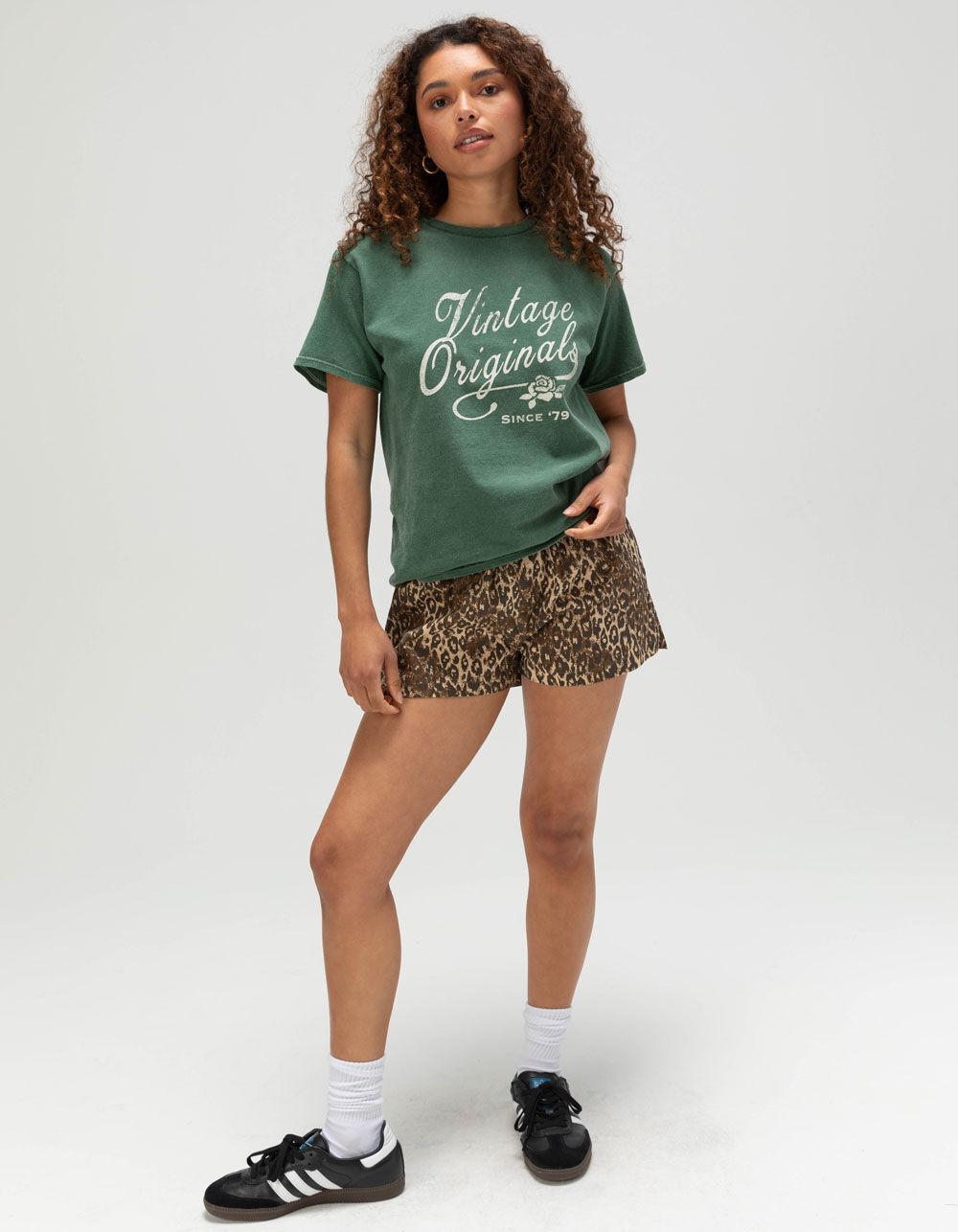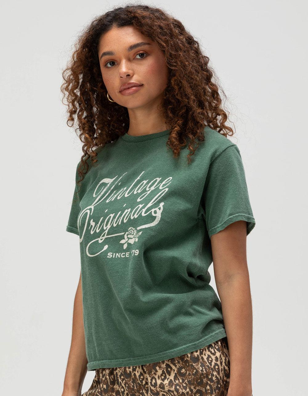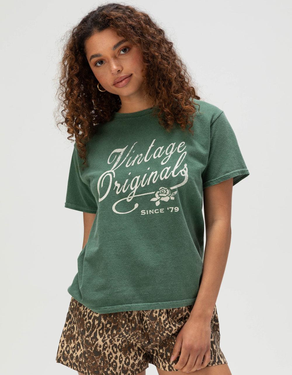 GREEN. BDG Urban Outfitters Originals Relaxed Baby Tee. Distressed Vintage Originals graphic screened on front. Garment washed for a vintage, lived-in look. Relaxed baby tee fit. Crew neck. Short sleeve. 100% Cotton. Machine wash. Imported.