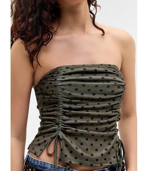 BDG Urban Outfitters Polka Dot Sleeveless Double Ruched Bandeau Top