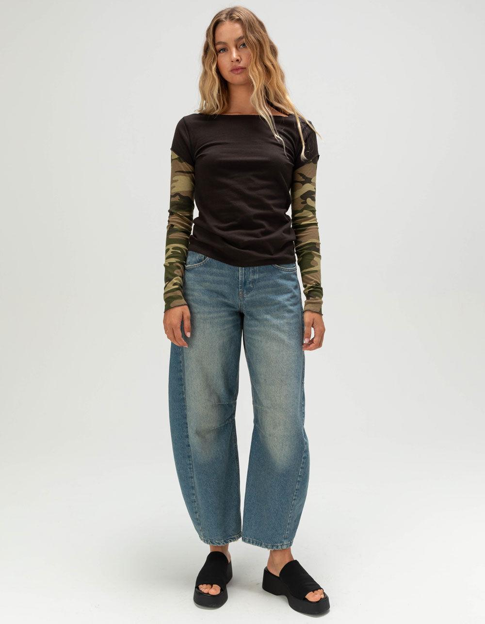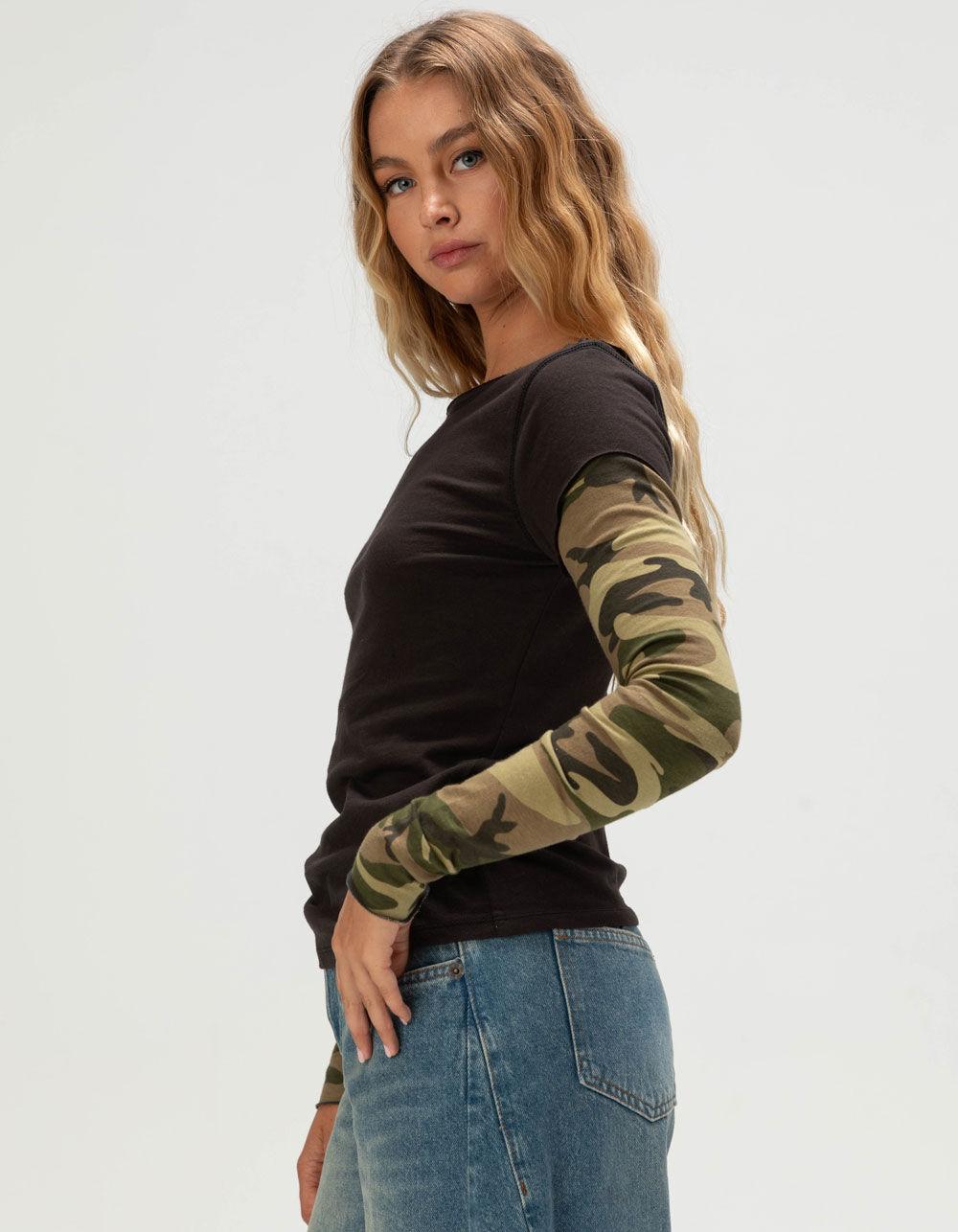 BLACK COMBO. BDG Urban Outfitters Sloane 2fer Long Sleeve Tee. 90s-inspired BDG long-sleeve tee in a slim & cropped fit. Featuring a boatneck & cap sleeve tee with a contrasting long-sleeve for an effortless layered look. Slim body-skimming fit. Cropped length. 100% Cotton. Machine wash. Imported.