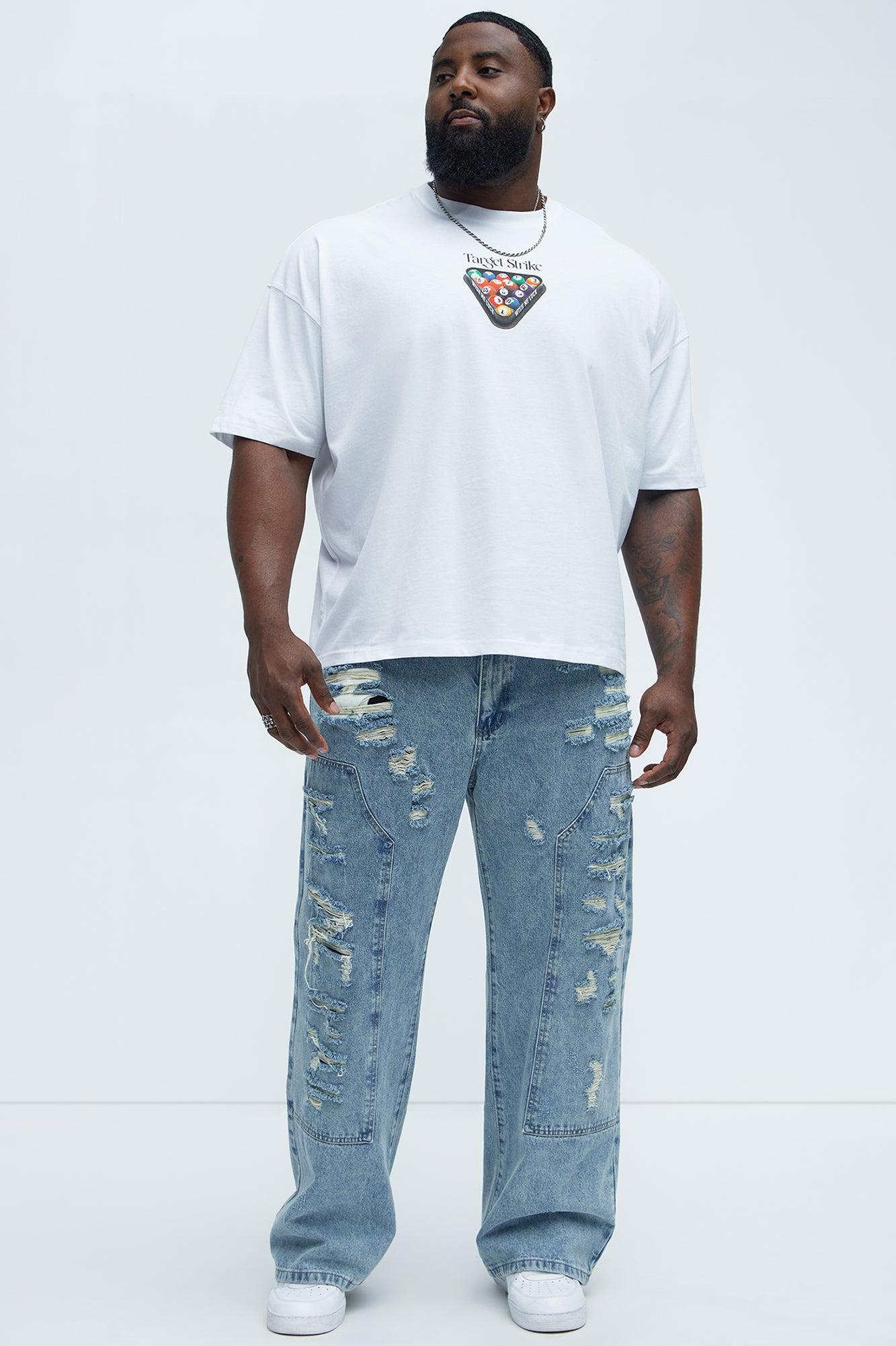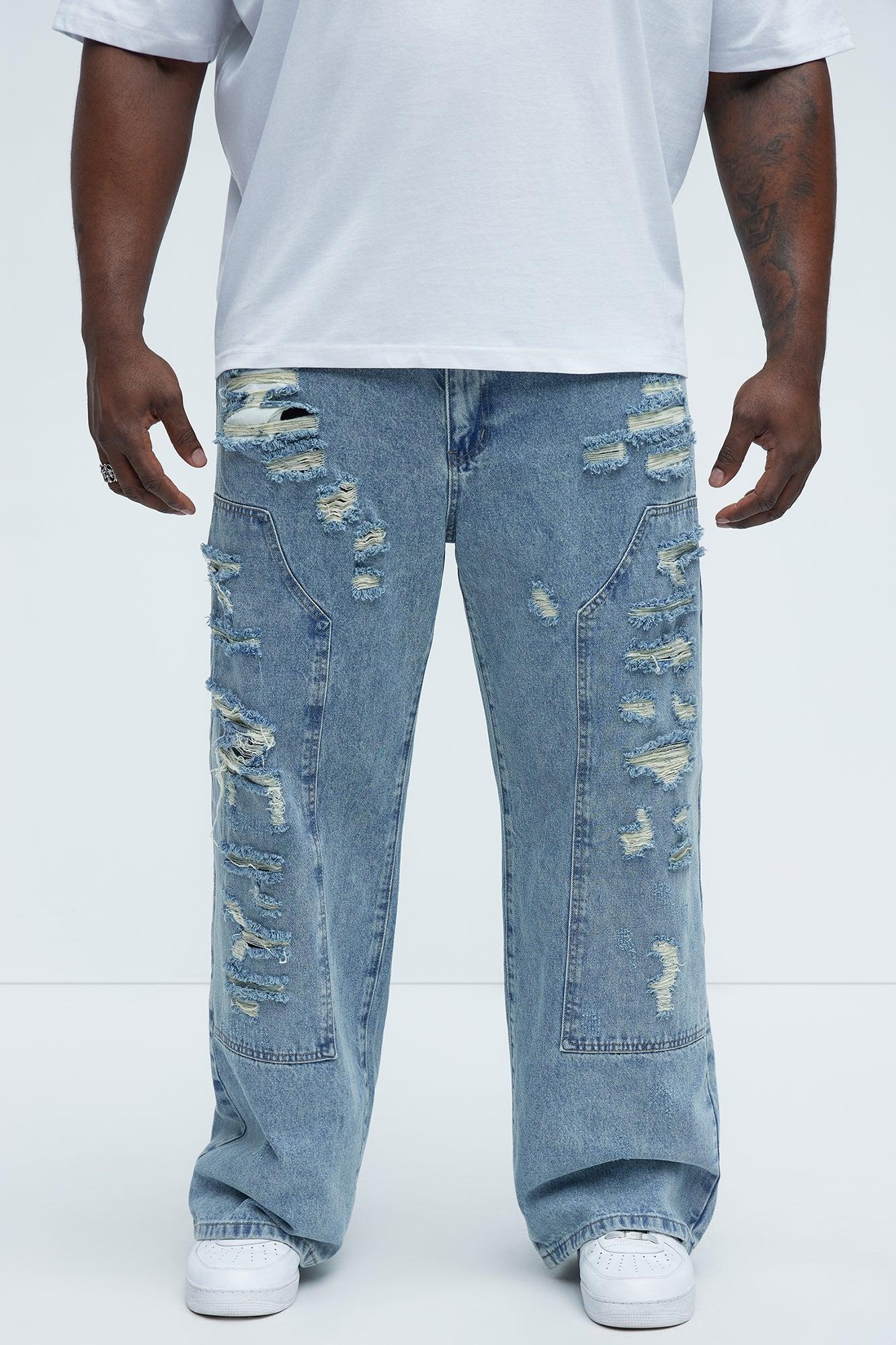 Be About It Distressed Carpenter Baggy Jeans - Light Wash