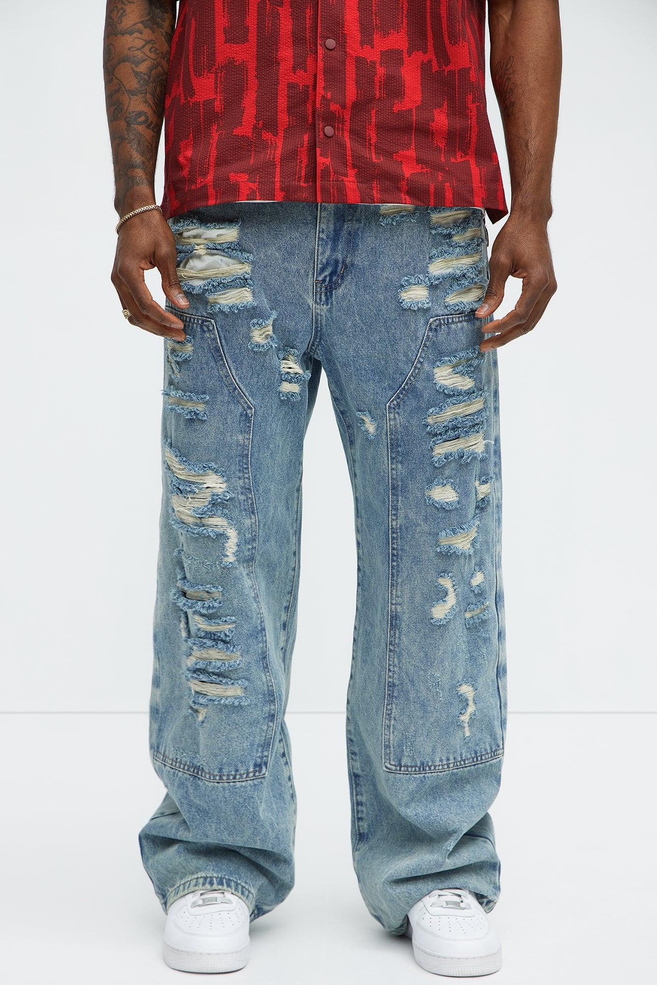 Available In Light Wash. Baggy Fit Zip Fly Button Closure 5 Pocket Detail Distressed Ripped Detail 98% Cotton, 2% Polyester Disclaimer: Due To The Specialized Distressing & Wash Process, Each Garment Is Unique. Imported