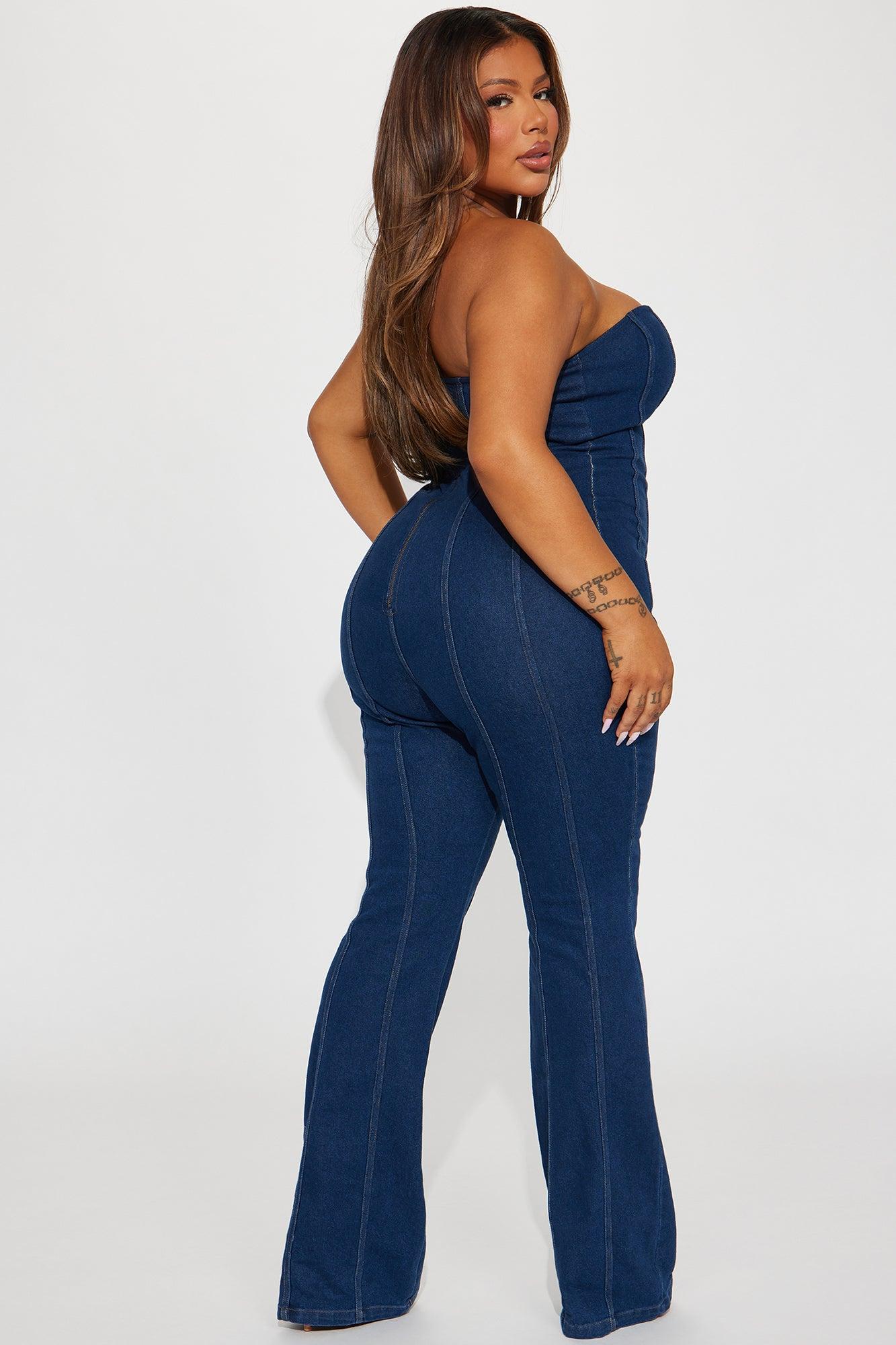 Available In Indigo. Denim Jumpsuit Tube Sweetheart Neckline Outer Seam Detail Wide Leg Back Zipper Stretch Inseam= 33" Disclaimer: Due To The Specialized Wash Process, Each Garment Is Unique. Self: 68.3% Cotton 31% Polyester 0.7% Spandex Imported California Proposition 65WARNING: Cancer and Reproductive Harm - www.P65Warnings.ca.gov.