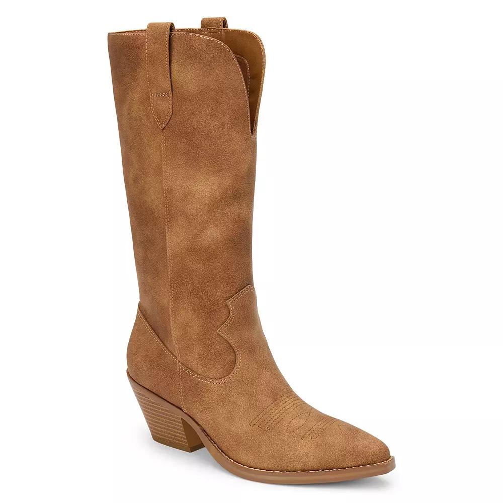 Unleash your inner style icon with these western-inspired boots from Beach by Matisse, designed to make a statement with every step. The charming block heel lends both support and a touch of sophistication, ensuring you look effortlessly chic whether you're out on the town or at a casual gathering. Click this FOOTWEAR GUIDE to find the perfect fit and more! - https://www.kohls.com/feature/shoesizeguide.jsp. FEATURES: Western-inspired design, Comfortable block heel. DETAILS: Pointed toe, Pull-on closure, Heel height: 2.25", Platform height: 0.375", Slip-resistant outsole, Imported. FIT & SIZE: Tall boot shaft, Shaft height: 12.5 inches, Shaft circumference: 13 inches. MATERIAL & CARE: Synthetic leather upper, Textile lining, Manmade outsole, Spot clean. Size: 7.5. Color: Distressed Saddle. Gender: female. Age Group: adult.
