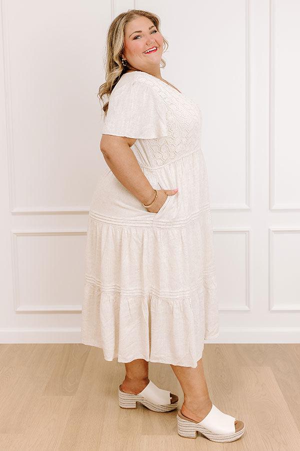 - From hometown strolls to beachside brunches, this midi dress brings effortless style everywhere you go. Its flowy fit and knit accents add the perfect touch of charm.