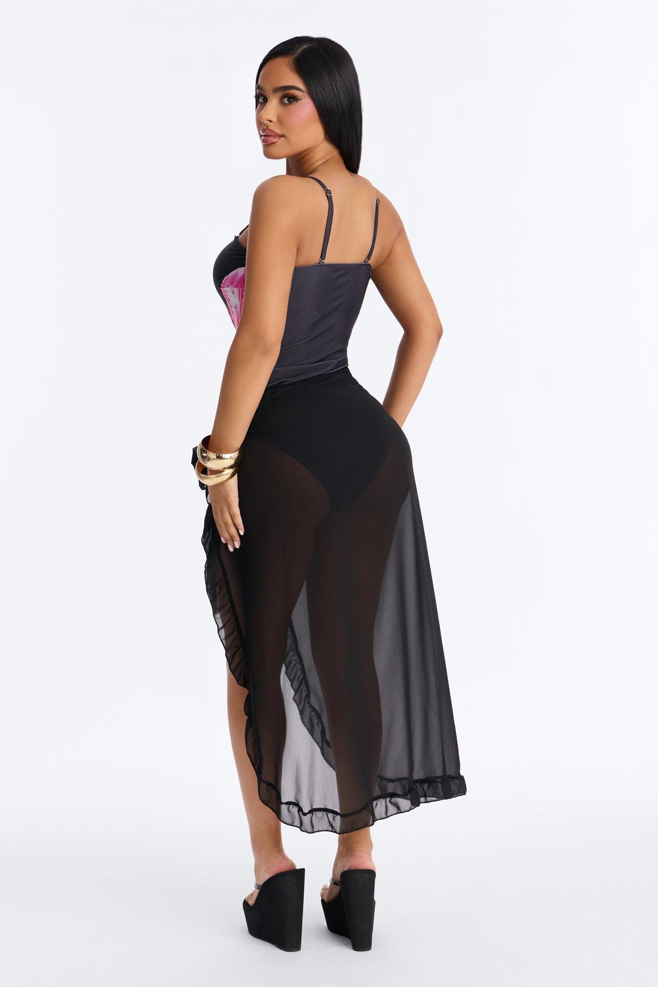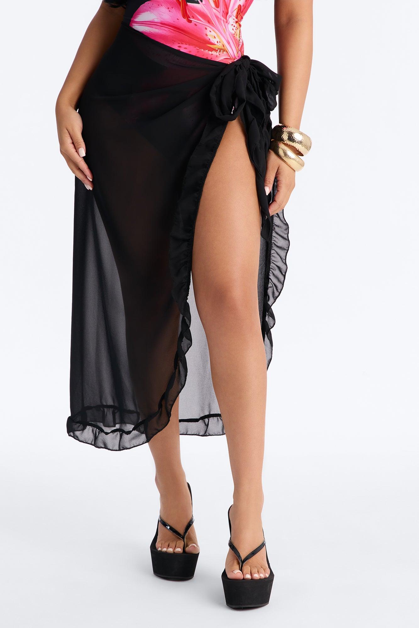 Beach Vibes Maxi Ruffle Trim Waist Tie Swim Cover Up Sarong - Black Female