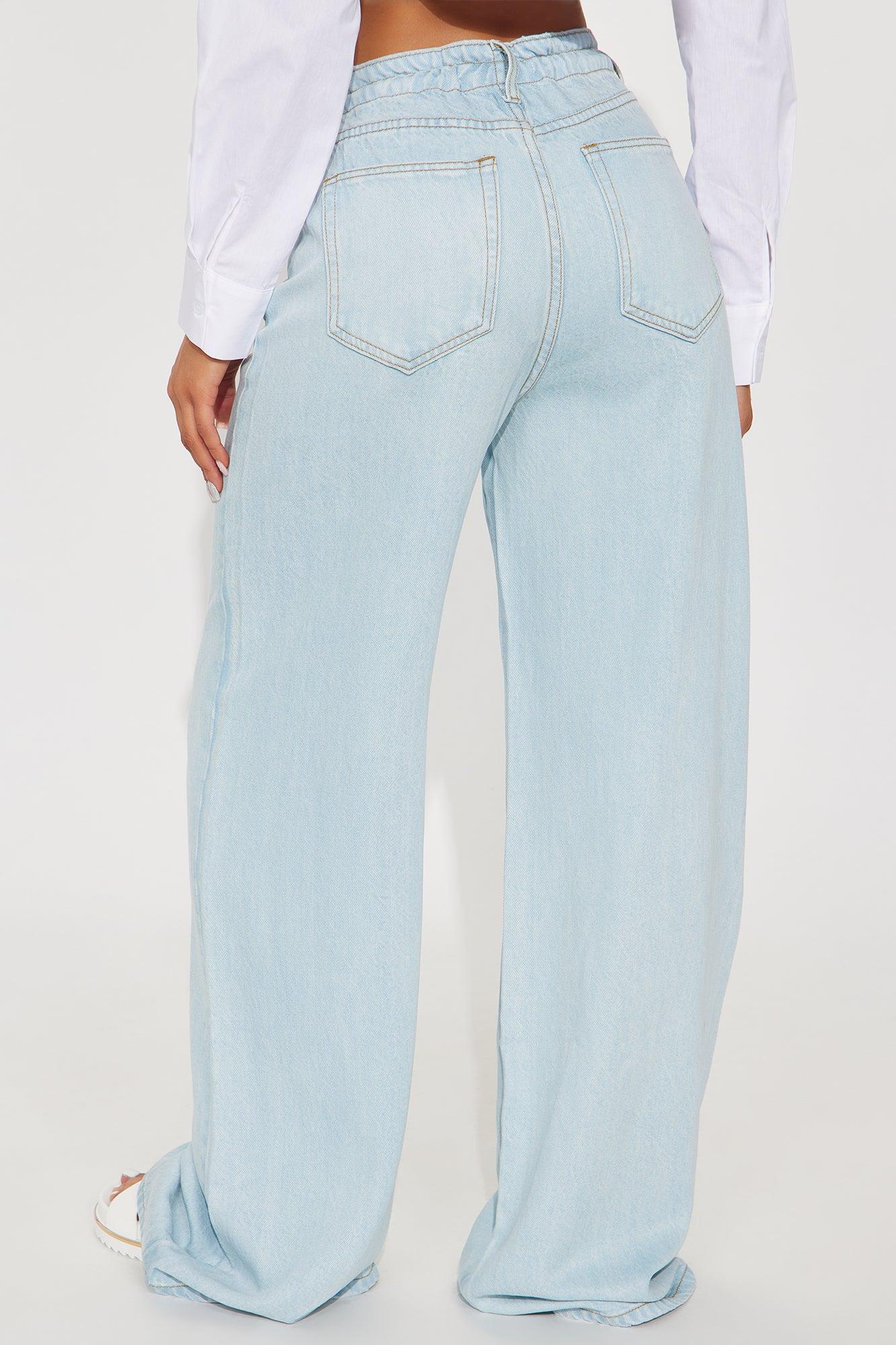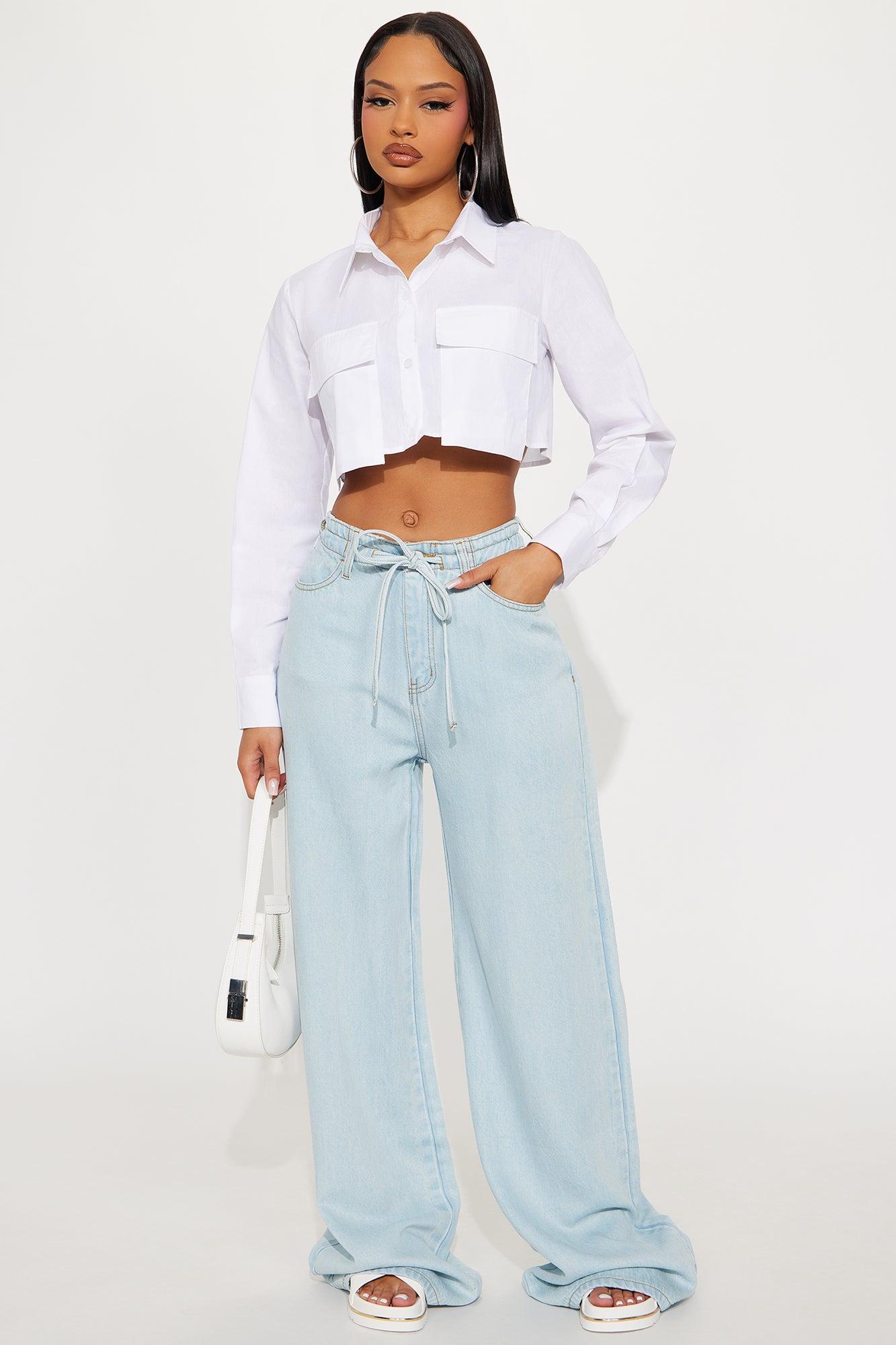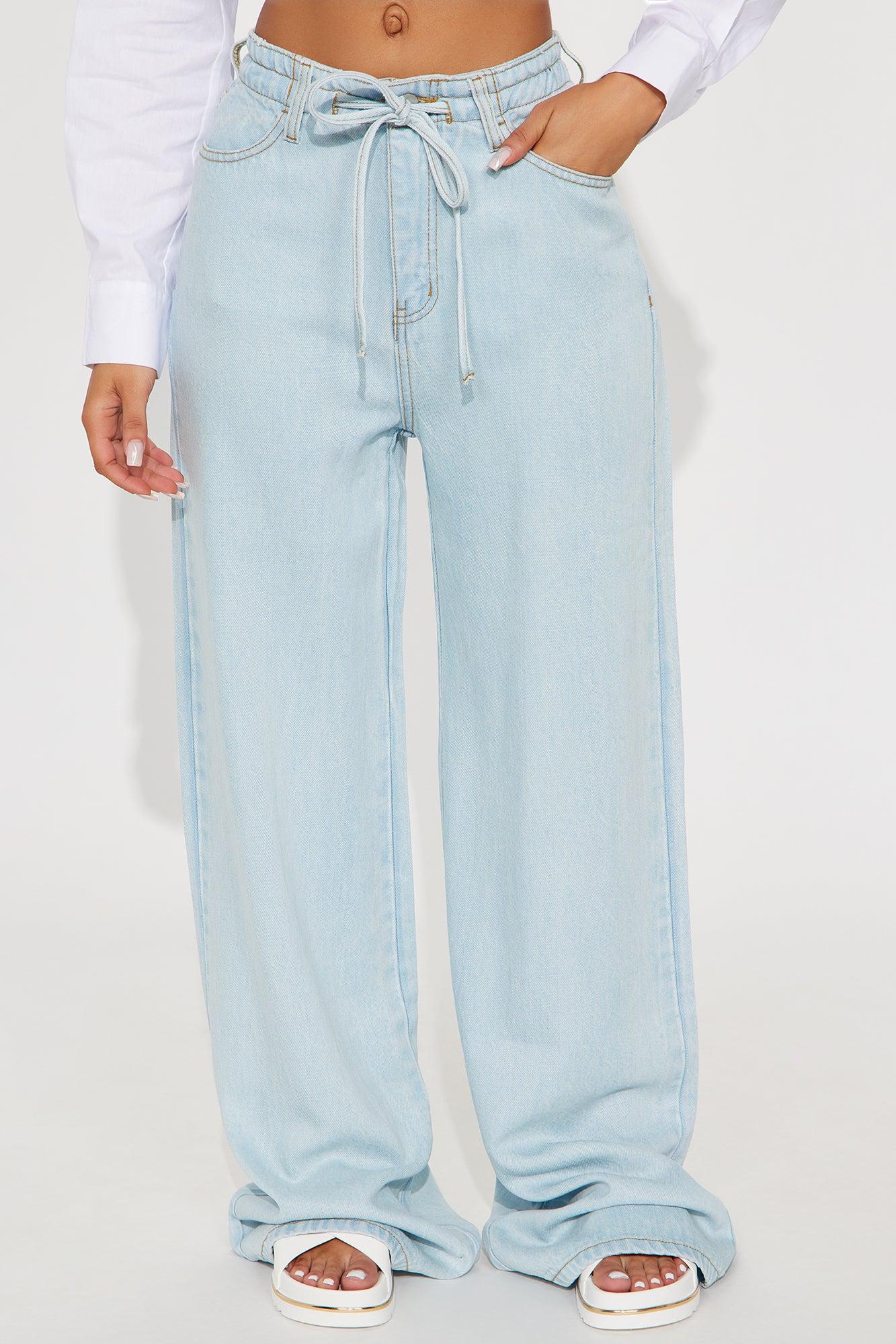 Available In Light Wash And Vintage Wash. Wide Leg Jean Super Soft Lightweight Authentic Denim Functional Drawstring Waist 4 Pocket Soft & Drapey Non Stretch 12" Rise 34" Inseam 100% Lyocell Imported California Proposition 65WARNING: Cancer and Reproductive Harm - www.P65Warnings.ca.gov.