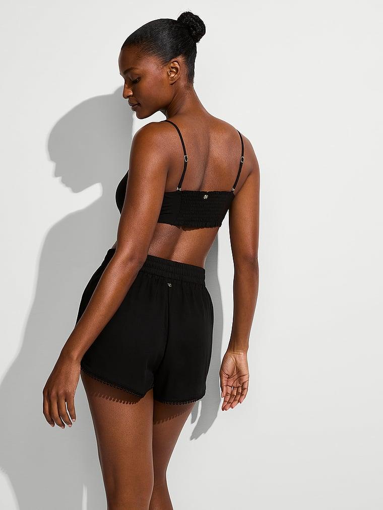 Smocked in back and tied in front for an ideal fit, this cute, versatile Top can be worn with or without the straps. Pair with the matching Shorts for a chic, warm-weather outfit. Unlined Wireless Tie-front styling Back smocked detail Removable, adjustable straps Hand wash Imported