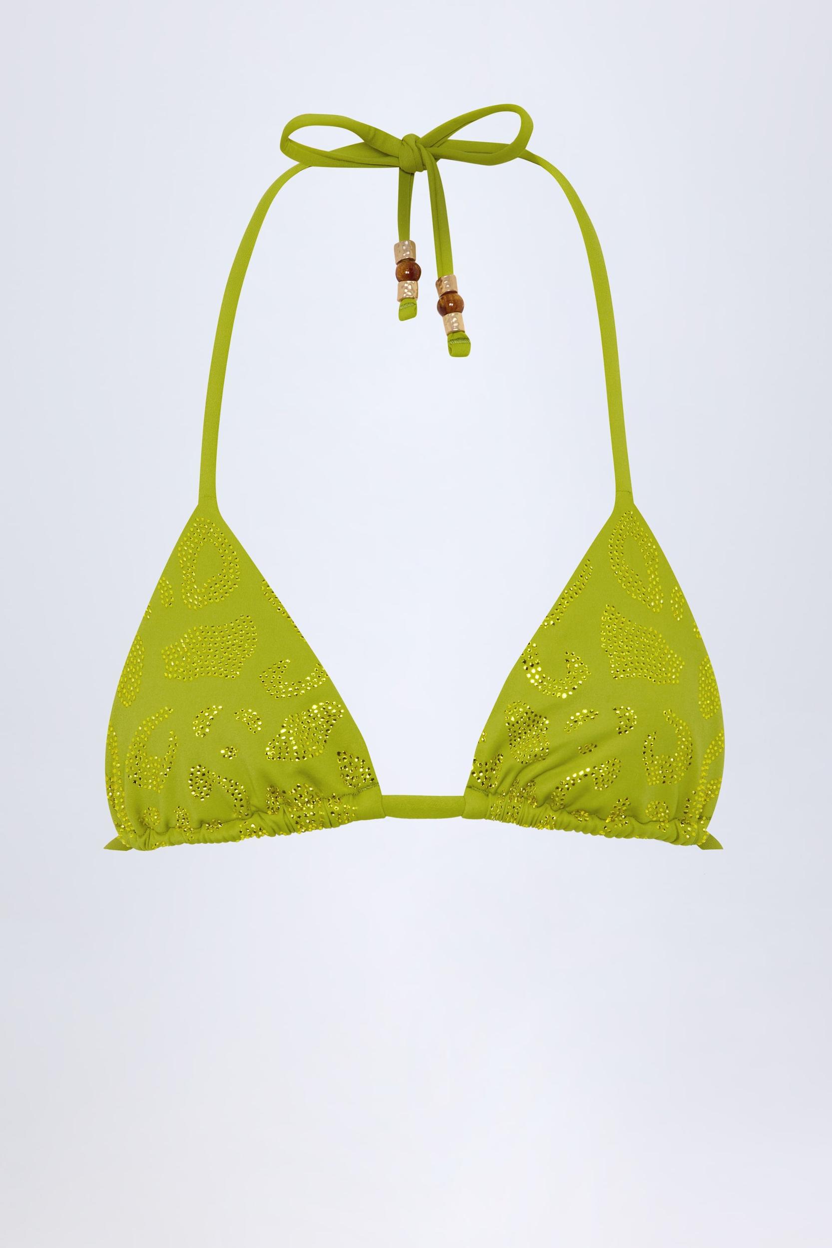 Charm-Detail Triangle Bikini Top in Olive Green