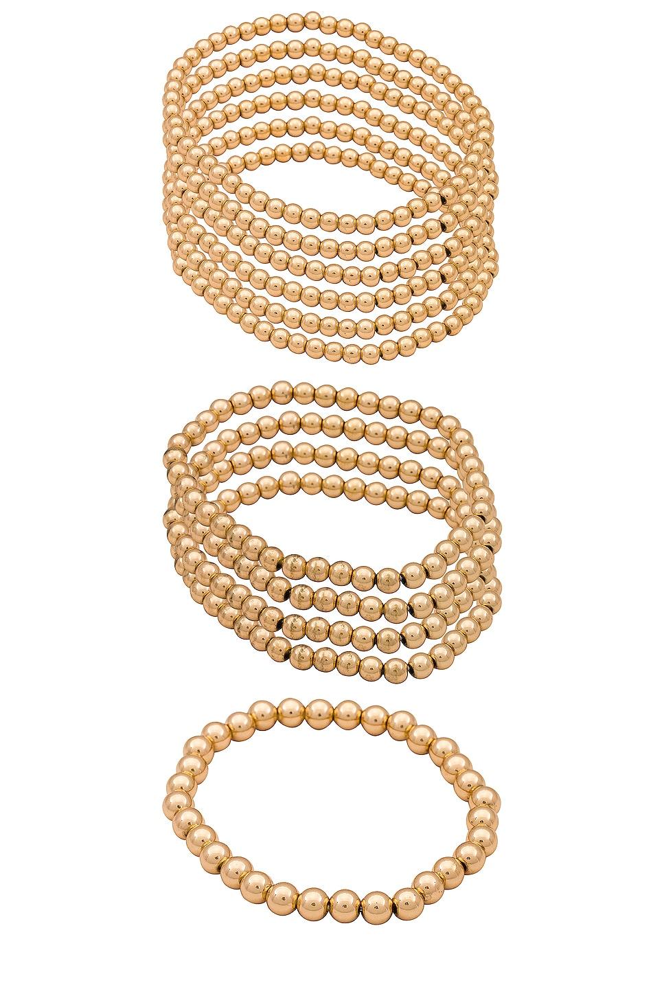 Silver-tone metal beaded bracelets. Made in China. Stretch fit. Set of 11. Revolve Style No. 8OTH-WL1613. Manufacturer Style No. 8ORMM843.