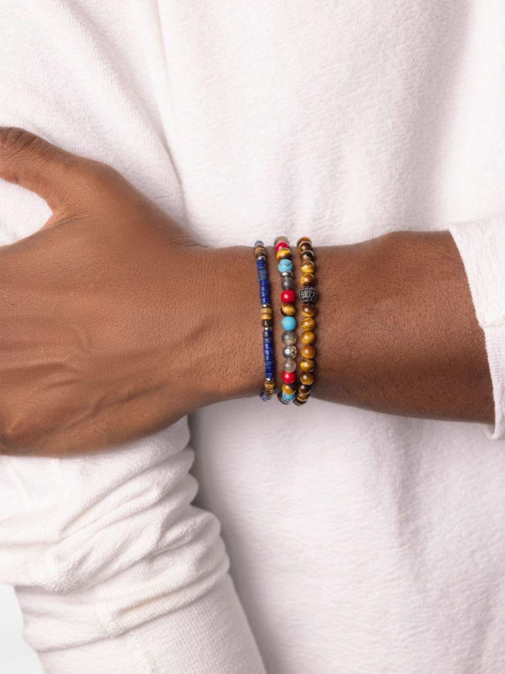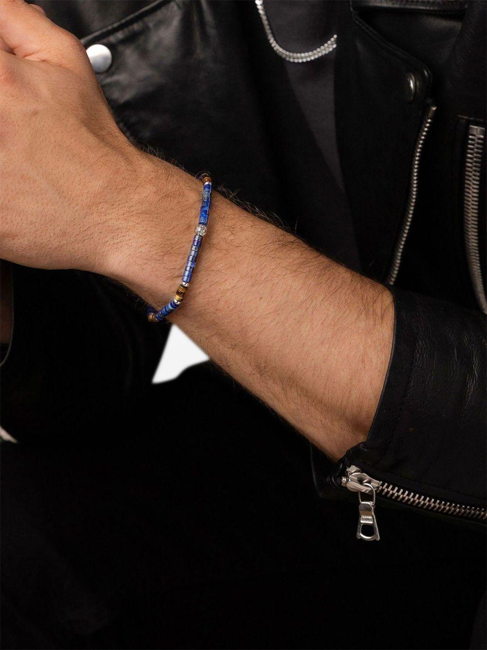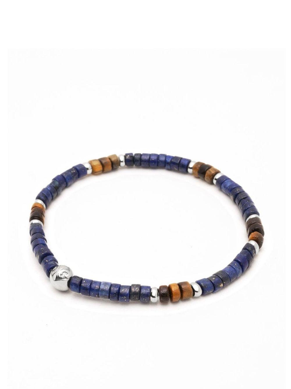 Nialaya Jewelry beaded bracelet | Blue | stainless steel/Tiger eye/Lapis Lazuli | Bracelets | Jewelry | Men