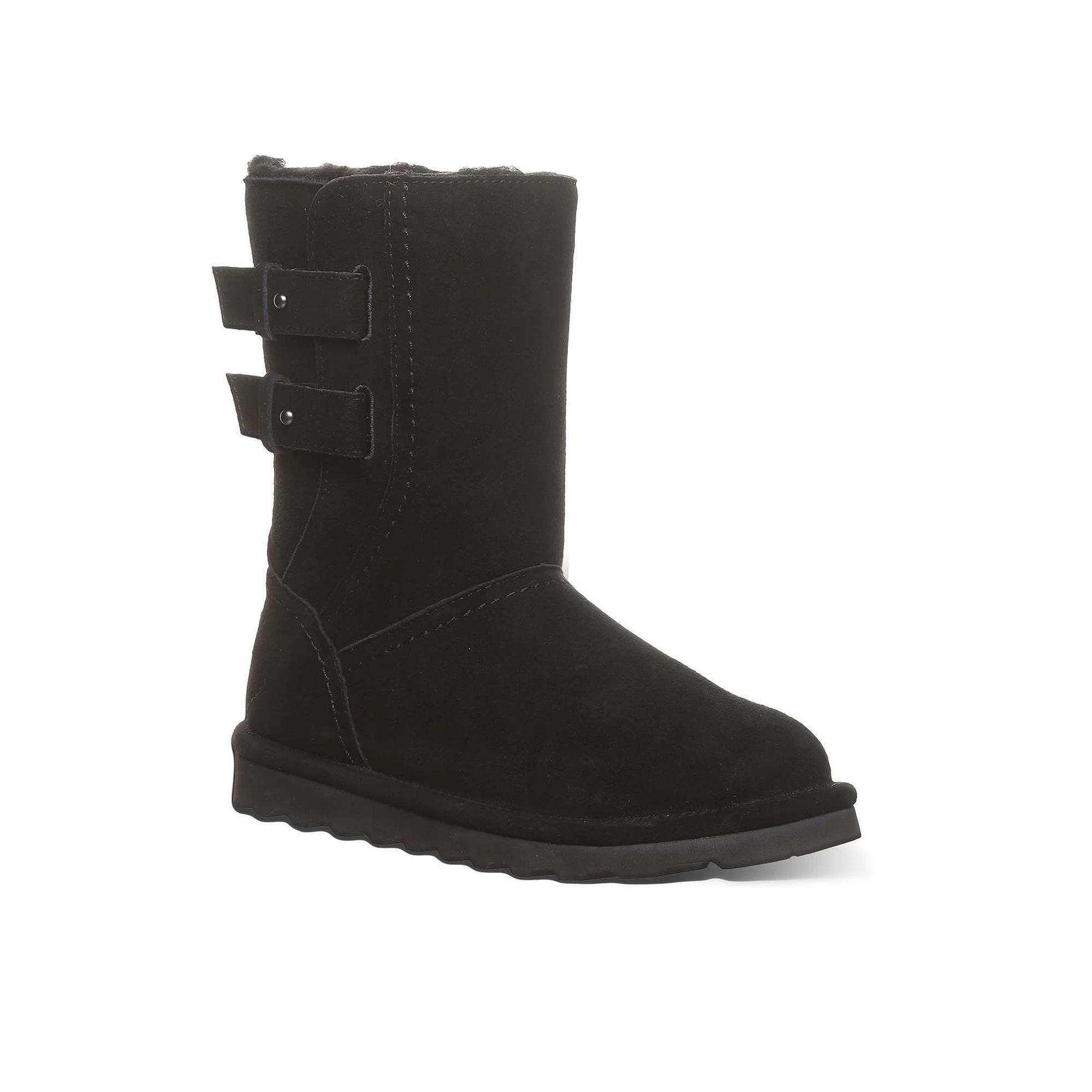 Discover the perfect blend of comfort and style with Bearpaw's chic pull-on boots. With a removable comfort wool footbed, these boots promise not just a fashionable statement but also cozy warmth for every step you take. Click this FOOTWEAR GUIDE to find the perfect fit and more! - https://www.kohls.com/feature/shoesizeguide.jsp. FEATURES: Removable comfort wool blend footbed, Water-repellent design for added protection. DETAILS: Round toe, Pull-on closure, Heel height: 0.75 in., Platform height: 0.75 in., Lug outsole, Removable insole, Imported. FIT & SIZE: Mid-calf shaft, 12-in. shaft circumference, 8-in. shaft height. MATERIAL & CARE: Suede upper, Wool blend lining, Lightweight blown rubber outsole, Spot clean. Color: Black. Gender: female. Age Group: adult.