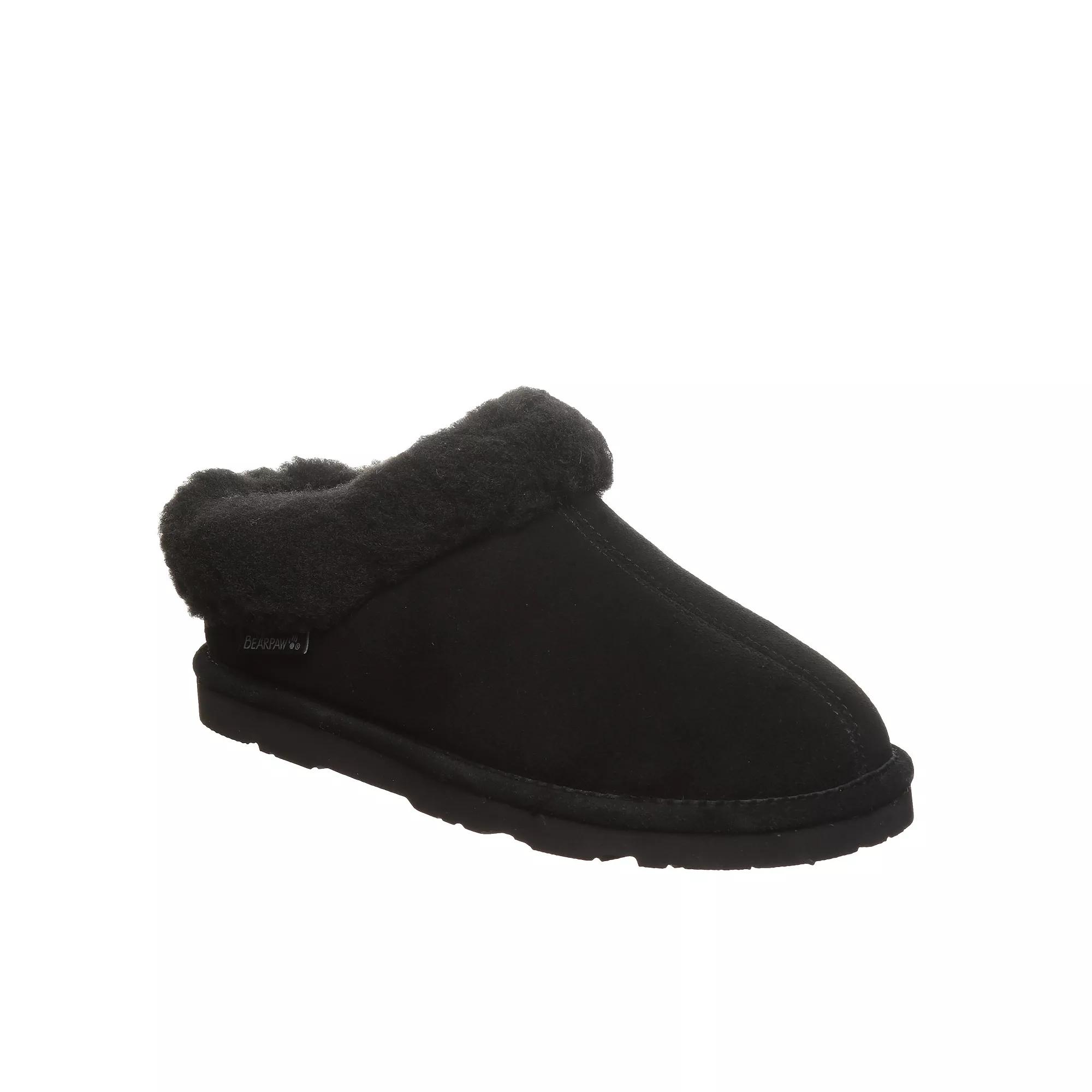 Step into pure comfort with the Brina women's faux-fur collar slippers from Bearpaw. Click this FOOTWEAR GUIDE to find the perfect fit and more! - https://www.kohls.com/feature/shoesizeguide.jsp. FEATURES: Plush suede upper gives a soft, luxurious feel for all-day comfort, Thick faux fur collar adds extra warmth and cozy style, Wool blend lining keeps feet insulated and comfortable in cooler temps, Comfort wool blend footbed cushions each step for cloud-like support, BearCoat Rain & Stain Repellent protects against moisture and dirt to keep clogs looking fresh, Easy slip-on design makes them perfect for quick outings or lounging indoors. DETAILS: Suede upper, Faux fur lining, Lightweight blown rubber outsole, Round toe, Slip-on, Wool blend footbed, 0.6-in. platform height, Spot clean, Imported. Size: 7. Color: Black. Gender: female. Age Group: adult.