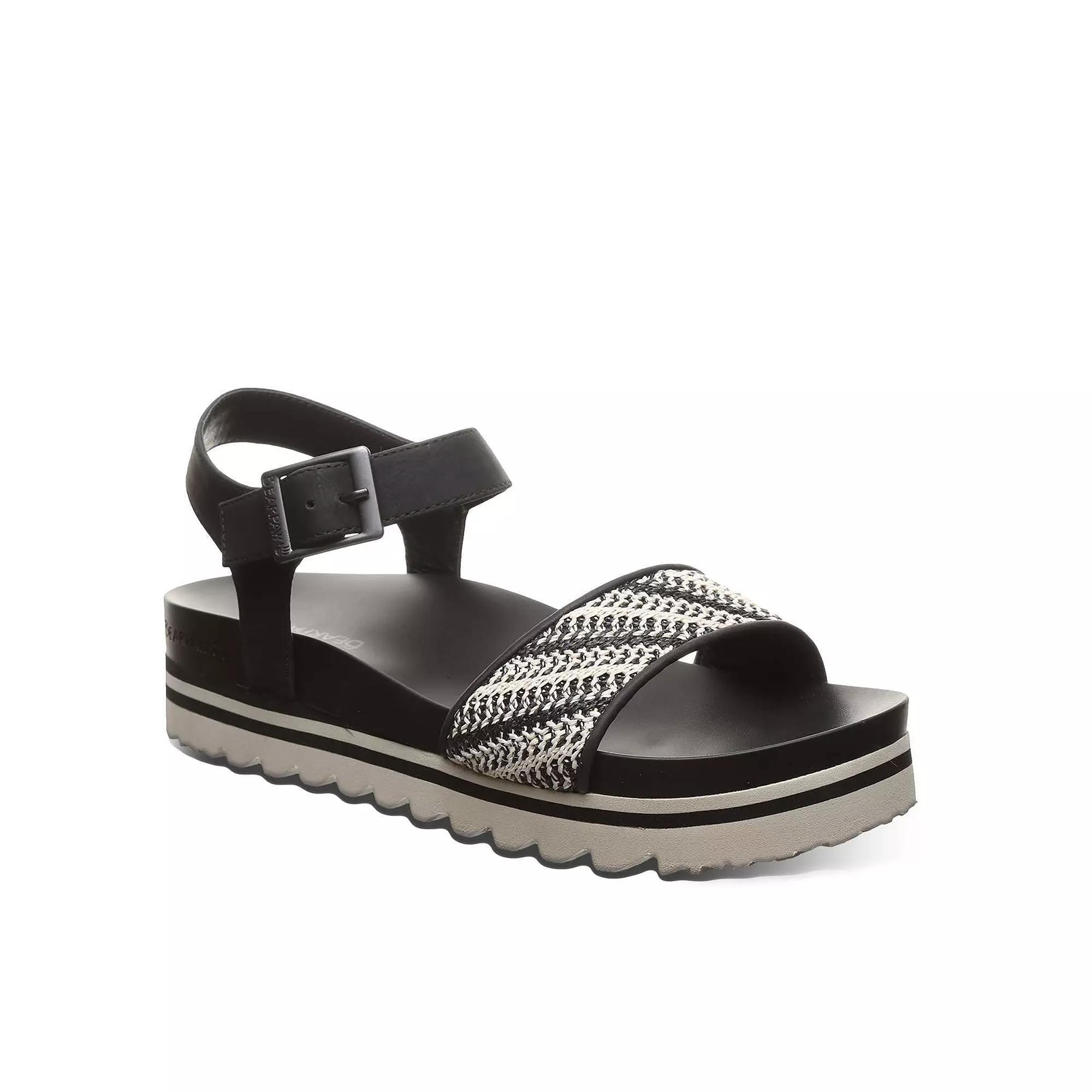 Embrace comfort and chic design with the Bearpaw Orion Womens Platform Slingback Sandals, featuring a stylish platform that elevates your look while ensuring all-day wearability. Crafted for ultimate versatility, these sandals seamlessly transition from casual outings to dressier occasions, making them a must-have addition to your summer wardrobe. Click on this SHOES GUIDE to learn about fit, styles, materials, and more! Embrace comfort and chic design with the Bearpaw Orion Womens Platform Slingback Sandals, featuring a stylish platform that elevates your look while ensuring all-day wearability. Crafted for ultimate versatility, these sandals seamlessly transition from casual outings to dressier occasions, making them a must-have addition to your summer wardrobe. Click on this SHOES GUIDE to learn about fit, styles, materials, and more! DETAILS Woven raffia and faux leather upper Faux leather lining EVA midsole Lightweight blown rubber outsole Open toe Buckle closure Polyurethane footbed 1.9-in. heel height 1.9-in. platform height Spot clean Imported NA Size: 6. Color: Black White. Gender: female. Age Group: adult.