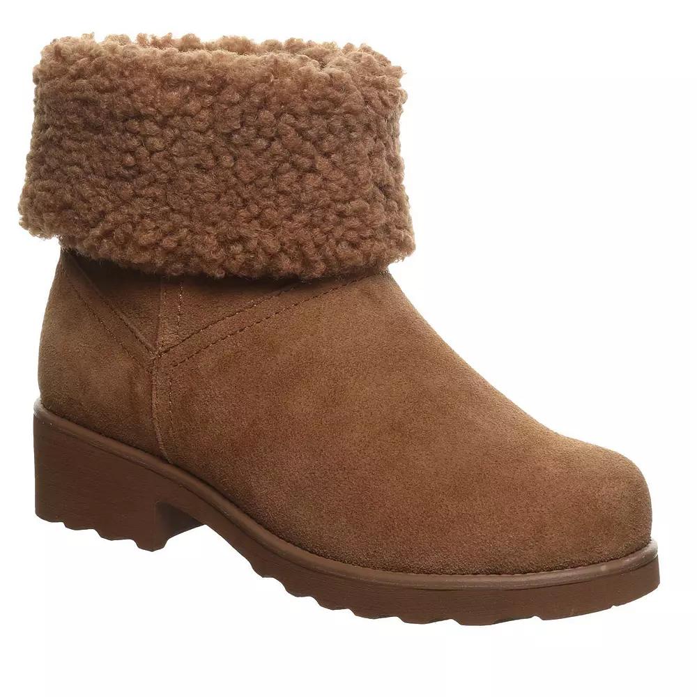 Discover the perfect blend of style and comfort with these stunning ankle boots from Bearpaw. Featuring a chic chunk heel and a versatile design, they effortlessly elevate any outfit, making them a go-to choice for both casual outings and stylish events. Click this FOOTWEAR GUIDE to find the perfect fit and more! - https://www.kohls.com/feature/shoesizeguide.jsp. FEATURES: Stunning suede bootie with a dreamy faux fur collar, Water-repellent design for winter weather protection. DETAILS: Suede upper, Sherpa fleece lining, Round toe, Pull-on closure, Lightweight blown rubber outsole, Faux fur details, Boot shaft circumference: 10.5", Boot shaft height: 5", 1.5" platform height, Removable insole, Spot clean, Imported. Size: 12. Color: Hickory. Gender: female. Age Group: adult.