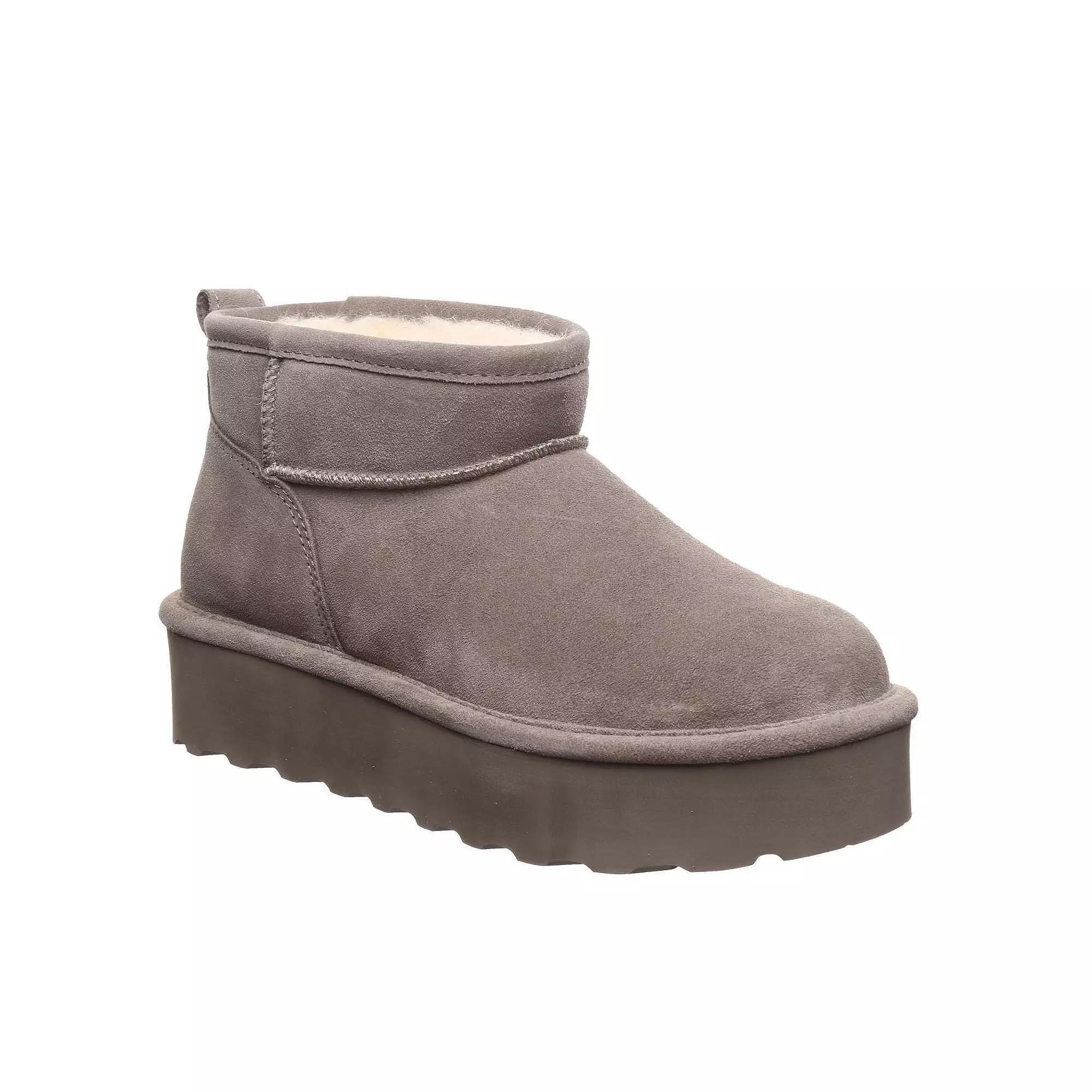 These Bearpaw Retro Shorty women's suede ankle boots will keep you stylish and warm all-season long! Click this FOOTWEAR GUIDE to find the perfect fit and more! - https://www.kohls.com/feature/shoesizeguide.jsp. SHOE FEATURES: Removable comfort sheepskin footbed, Treated with NeverWet Technology for water resistance, Lightweight blown rubber outsole. SHOE CONSTRUCTION: Suede upper, Sheepskin and wool blend lining, EVA midsole, Rubber outsole. SHOE DETAILS: Round toe, Pull-on, Sheepskin footbed, 5-in. shaft, 10.5-in. circumference. Size: 11. Color: Morel. Gender: female. Age Group: adult.
