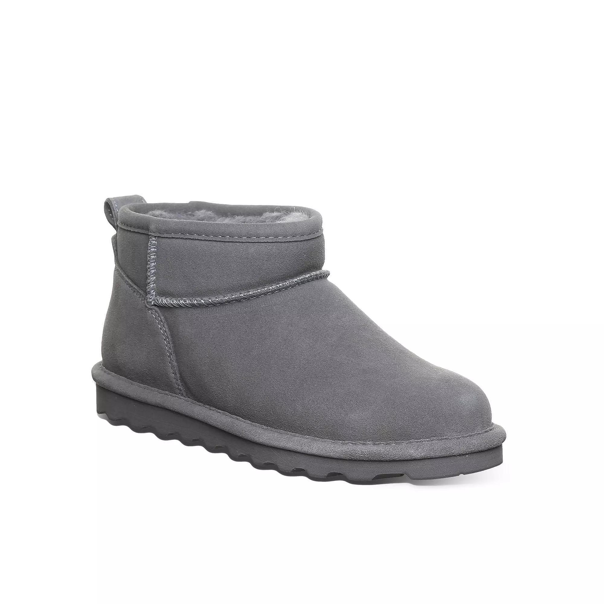 Step into style and comfort with these Bearpaw Shorty women's suede winter boots. Click this FOOTWEAR GUIDE to find the perfect fit and more! - https://www.kohls.com/feature/shoesizeguide.jsp. FEATURES: Treated with BearCoat™ Rain & Stain Repellent, Ankle height, Product contains real animal fur, Pull-on for easy on and off. DETAILS: Suede upper, Sheepskin, wool blend lining, Lightweight blown rubber outsole, Round toe, Pull-on, Padded footbed, 0.75-in. heel, 0.75-in. platform, 3.75-in. shaft, 10.5-in. circumference, Spot clean, Imported. Color: Gadget Gray. Gender: female. Age Group: adult.