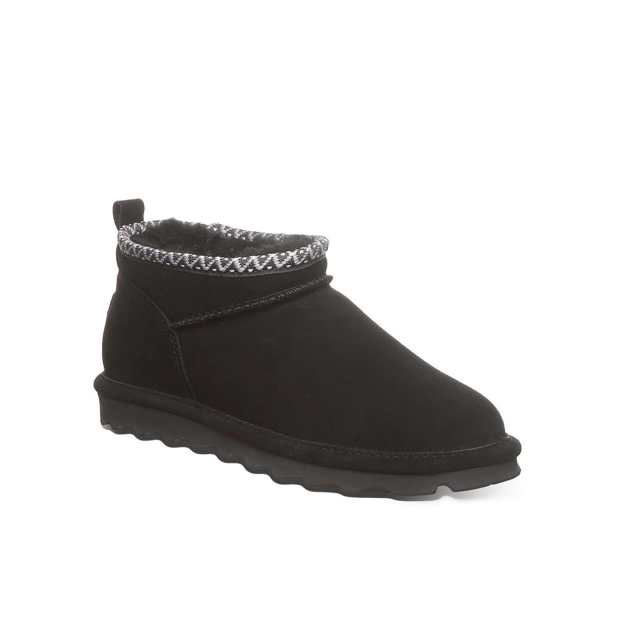 Embrace your unique style with these Bearpaw ankle boots, designed to elevate both casual and chic outfits. They promise all-day coziness, allowing you to effortlessly transition from morning errands to evening outings with flair. Click this FOOTWEAR GUIDE to find the perfect fit and more! - https://www.kohls.com/feature/shoesizeguide.jsp. FEATURES: Water-repellent design for protection against moisture, Cropped ankle style with sleek suede for a modern look, Unique webbing tape accent for a touch of flair. DETAILS: Round toe, Pull-on closure, Heel height: 0.75 in., Platform height: 0.75 in., Lug outsole, Removable insole. FIT & SIZE: Ankle boot shaft, Shaft height: 3-in., Shaft circumference: 11.5-in. MATERIAL & CARE: Suede upper, Wool blend lining, Lightweight blown rubber outsole, Spot clean, Imported. Size: 10. Color: Black. Gender: female. Age Group: adult.