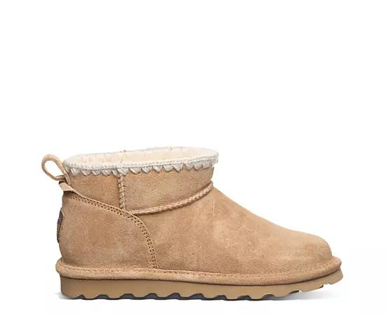 Bearpaw Shorty Crochet Womenâs Fur Boot - Coffee Get warmth up to your ankles in the Shorty Crochet fur Boot by Bearpaw. With a suede upper treated with BearCoat⢠Rain and Stain Repellent to protect against the elements, this pull-on Boot ie is accented with crochet stitching along the top. The lining & footbed offer warm cushioning while the outsole adds some traction to your unbothered steps. Suede upper Pull-on Crochet topline Removable comfort footbed Blown Rubber outsole Treated with BearCoat⢠Rain and Stain Repellent for added protection