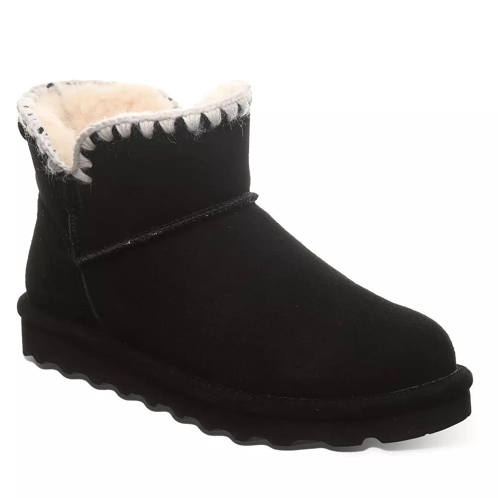 Discover the perfect blend of style and comfort with Bearpaw's ankle boots, designed to elevate your everyday look. Featuring charming crochet trim, these boots effortlessly pair with your favorite jeans or flowing skirts, making them a versatile addition to your wardrobe that you'll love to wear all season long. Click this FOOTWEAR GUIDE to find the perfect fit and more! - https://www.kohls.com/feature/shoesizeguide.jsp. FEATURES: Cozy plush wool blend lining for added warmth, Stylish crochet collar trim for a fashionable touch, Water-repellent BearCoat technology for protection against the elements. DETAILS: Suede upper, Wool blend lining, Lightweight blown rubber outsole, Removable insole, Round toe, Pull-on closure, 12" shaft circumference, 4.5" shaft height, 0.75" platform height, Spot clean, Imported. Size: 6. Color: Black. Gender: female. Age Group: adult.