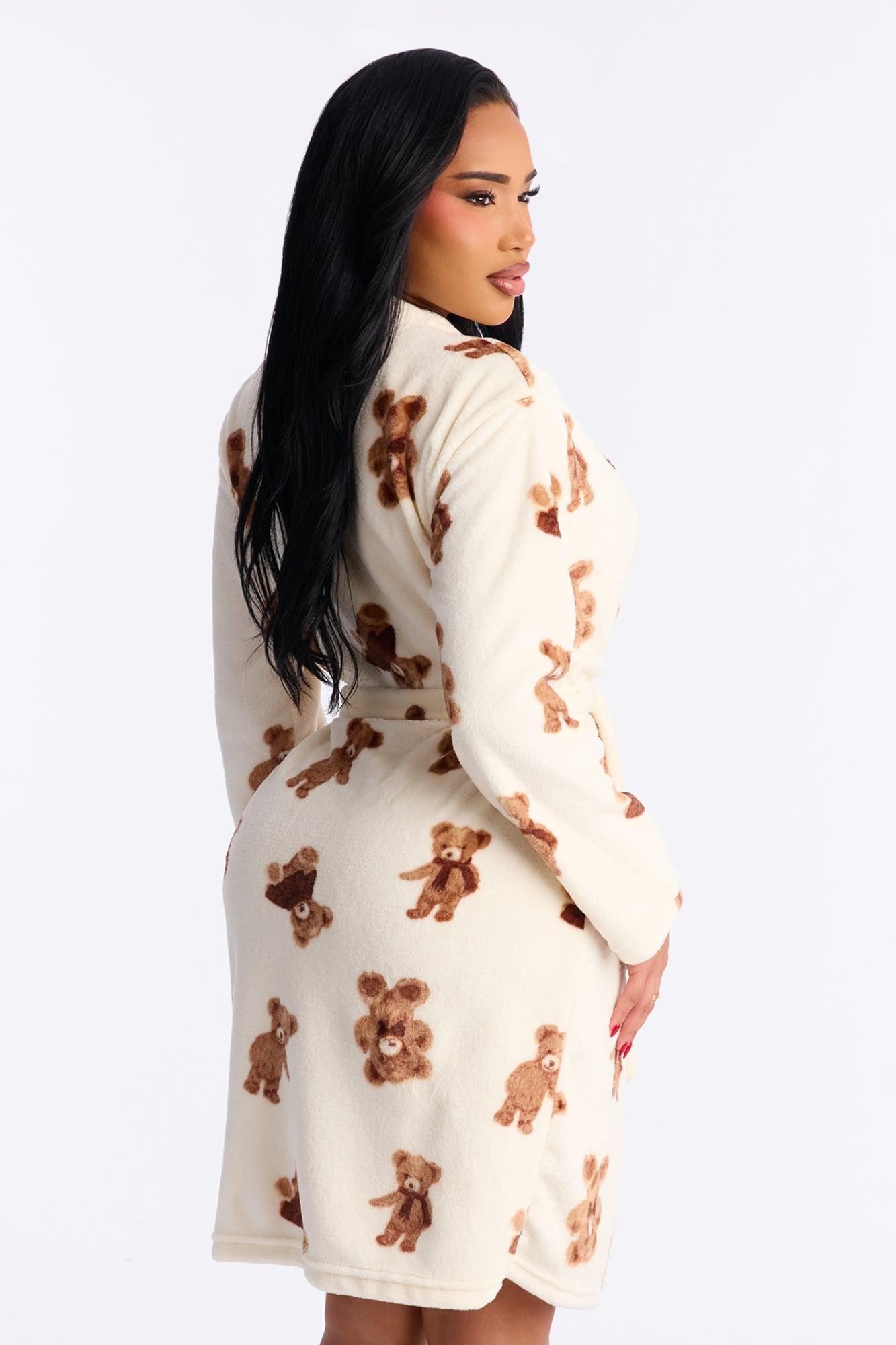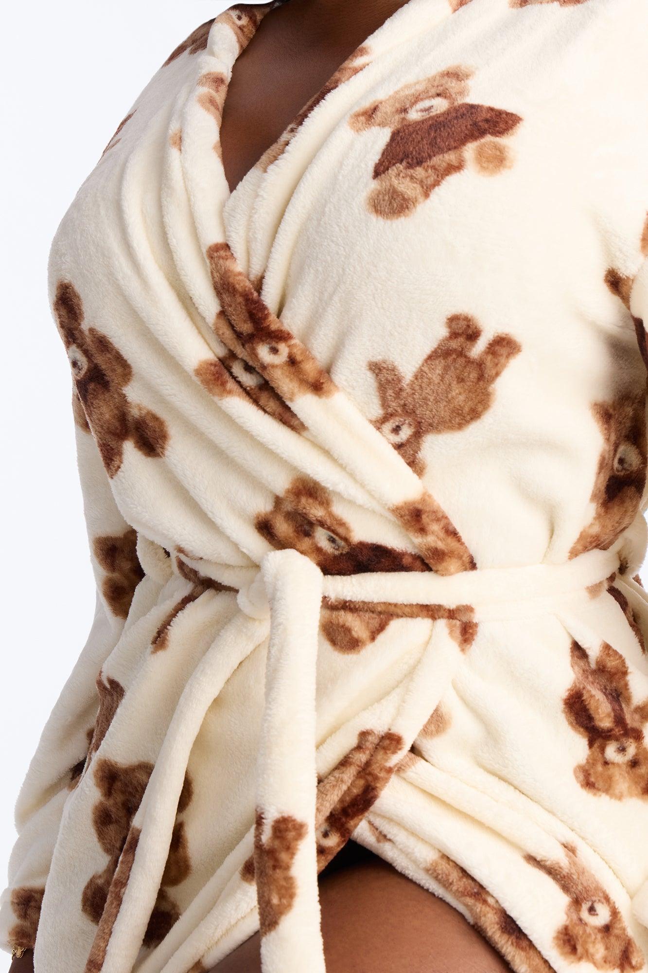 Beary Cozy Plush PJ Robe - Ivory/combo Female