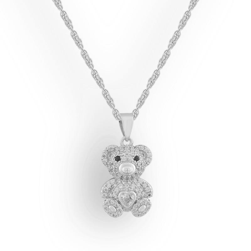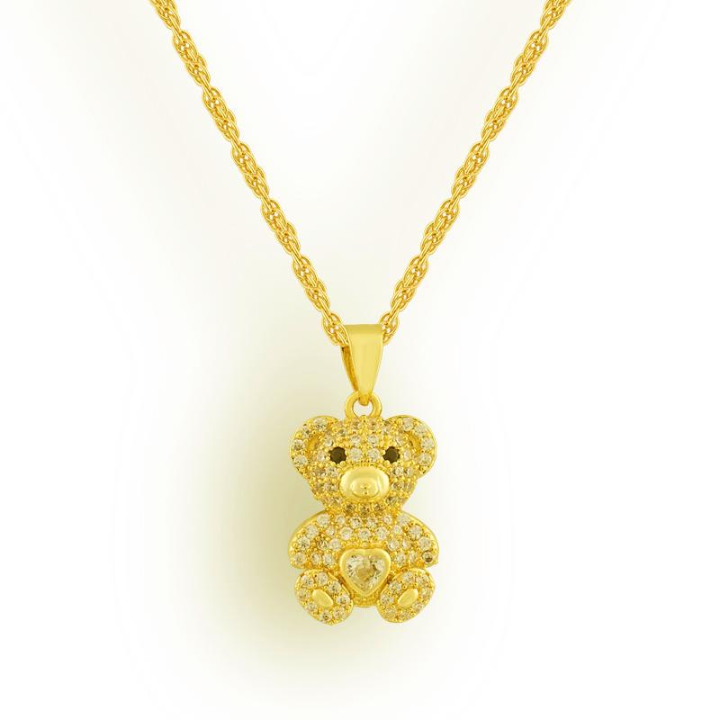Elevate your style with the Beary Cute Necklace, featuring a charming bear design adorned with sparkling CZ stones. This eye-catching piece effortlessly combines playful elegance with lasting shine, making it the perfect accessory to showcase your unique personality and captivate attention wherever you go. Don't miss out on adding this irresistible necklace to your collection.