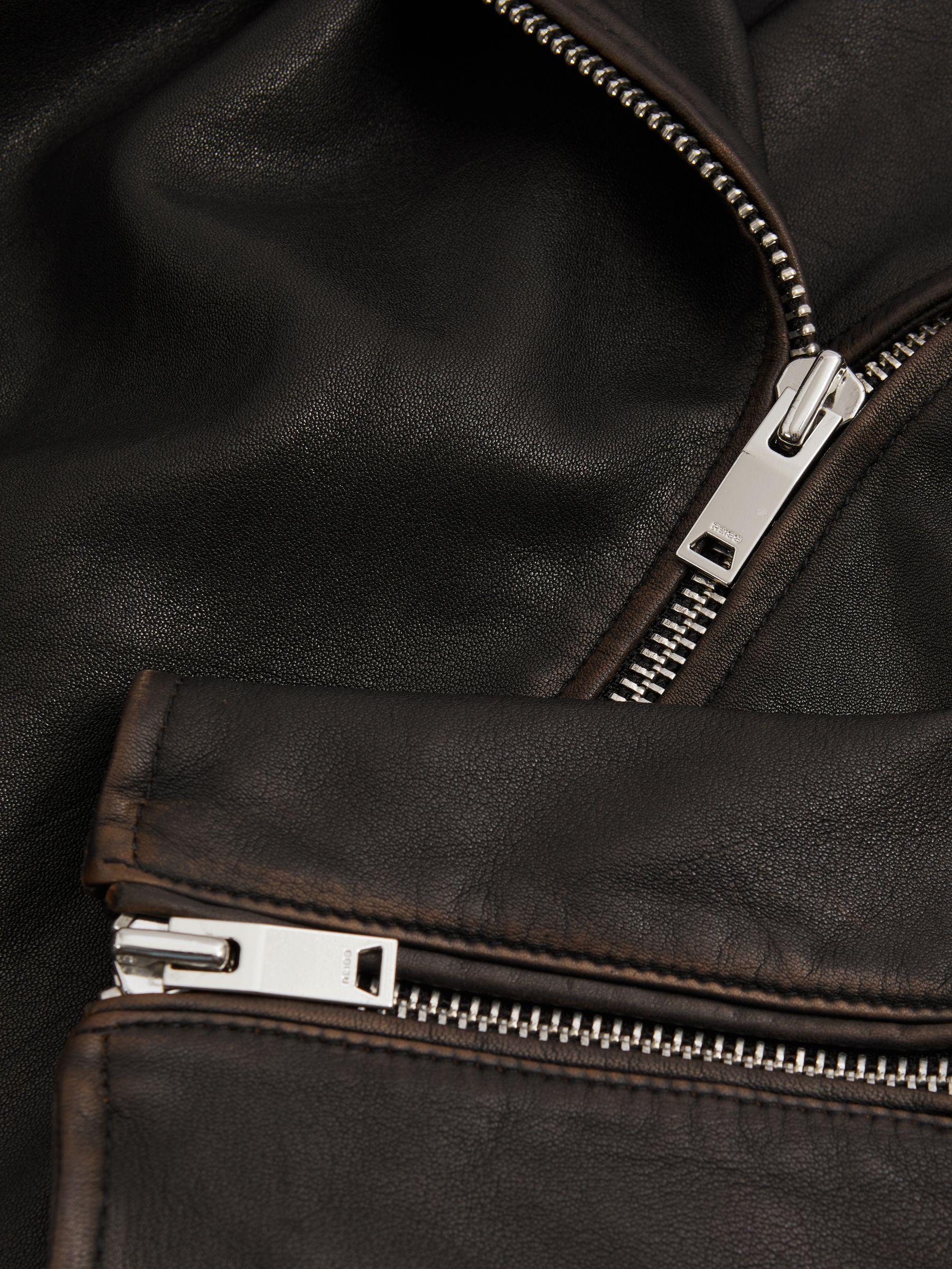 Made from sheep leather for a supremely soft finish, the Beau biker jacket features tanned trims for a vintage look and feel. Press-studs fasten the lapels against the chest and it zips close at the front. 100% leather. Press-stud lapels. Zip-front closure. Side pockets. Zipped cuffs. Lined. Made in India.
