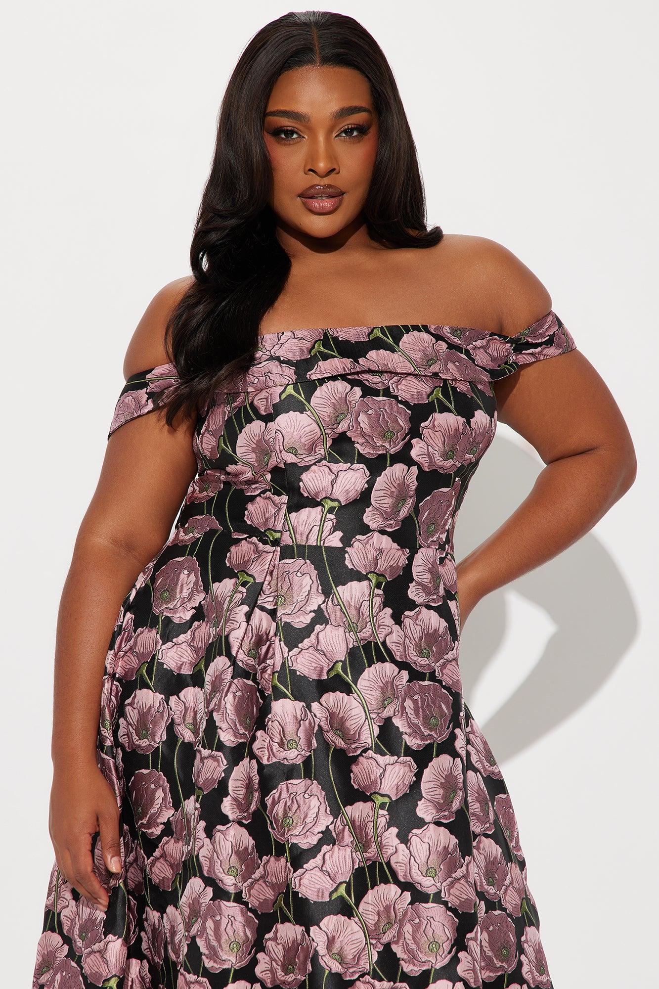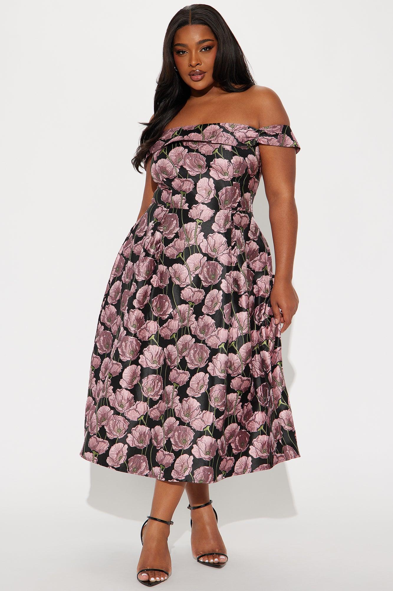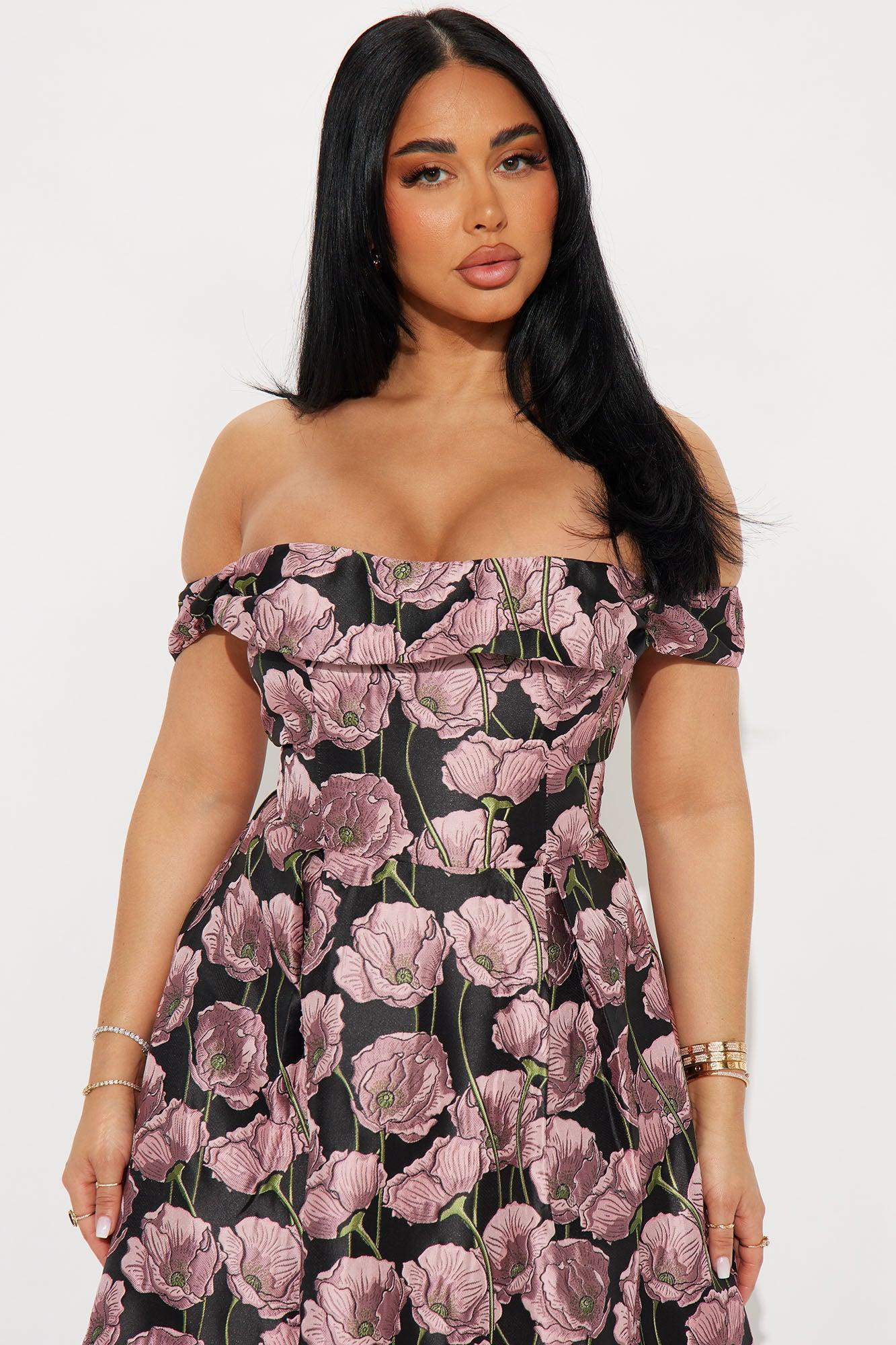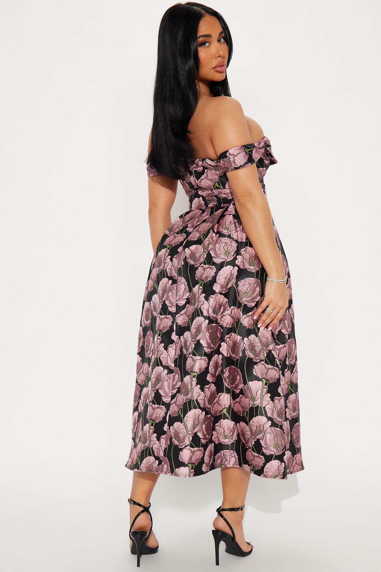 Beautiful Bloom Jacquard Midi Dress - Black/Pink