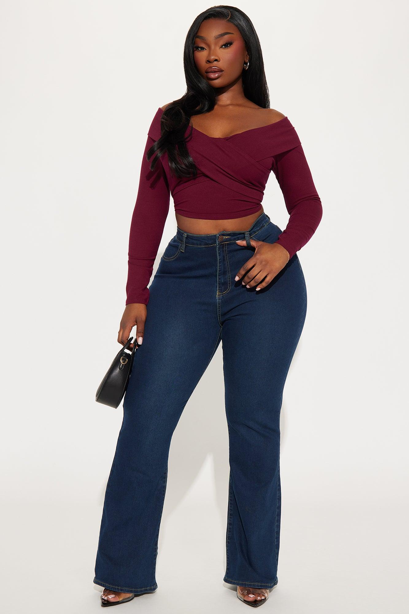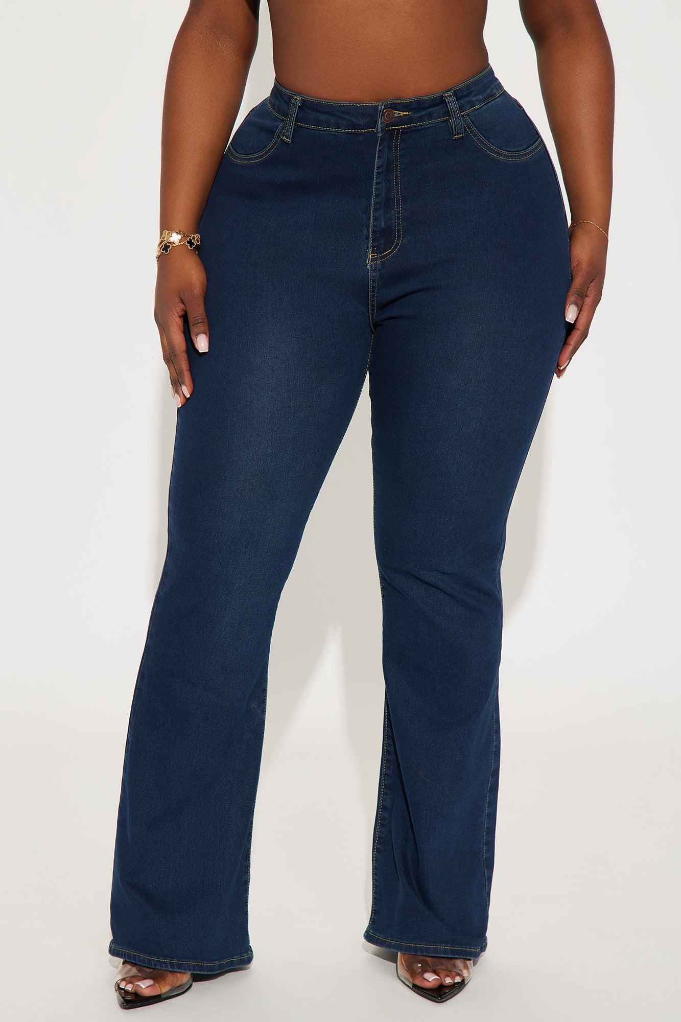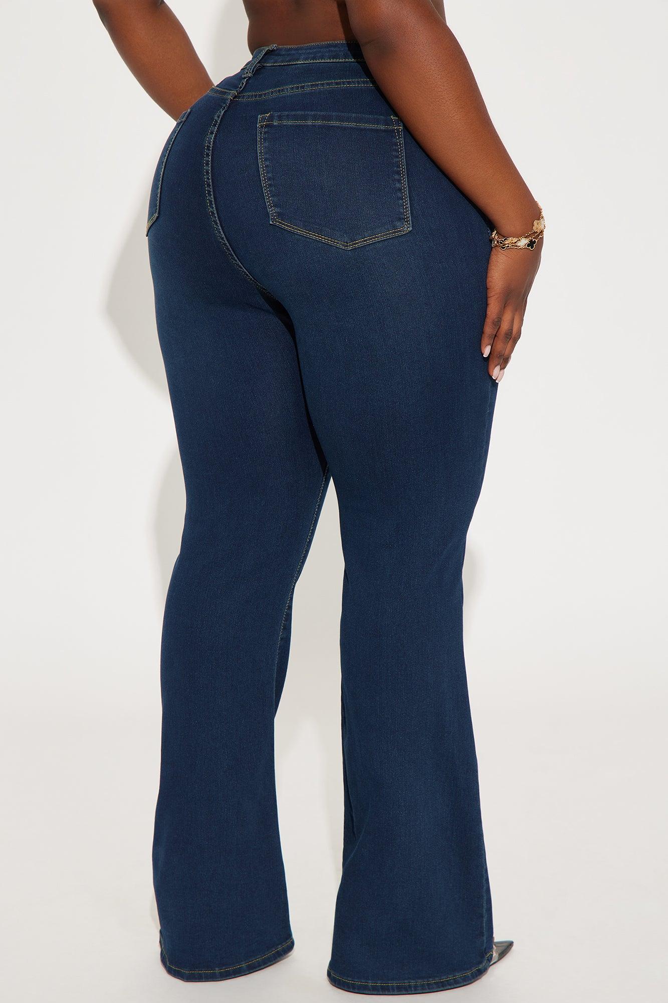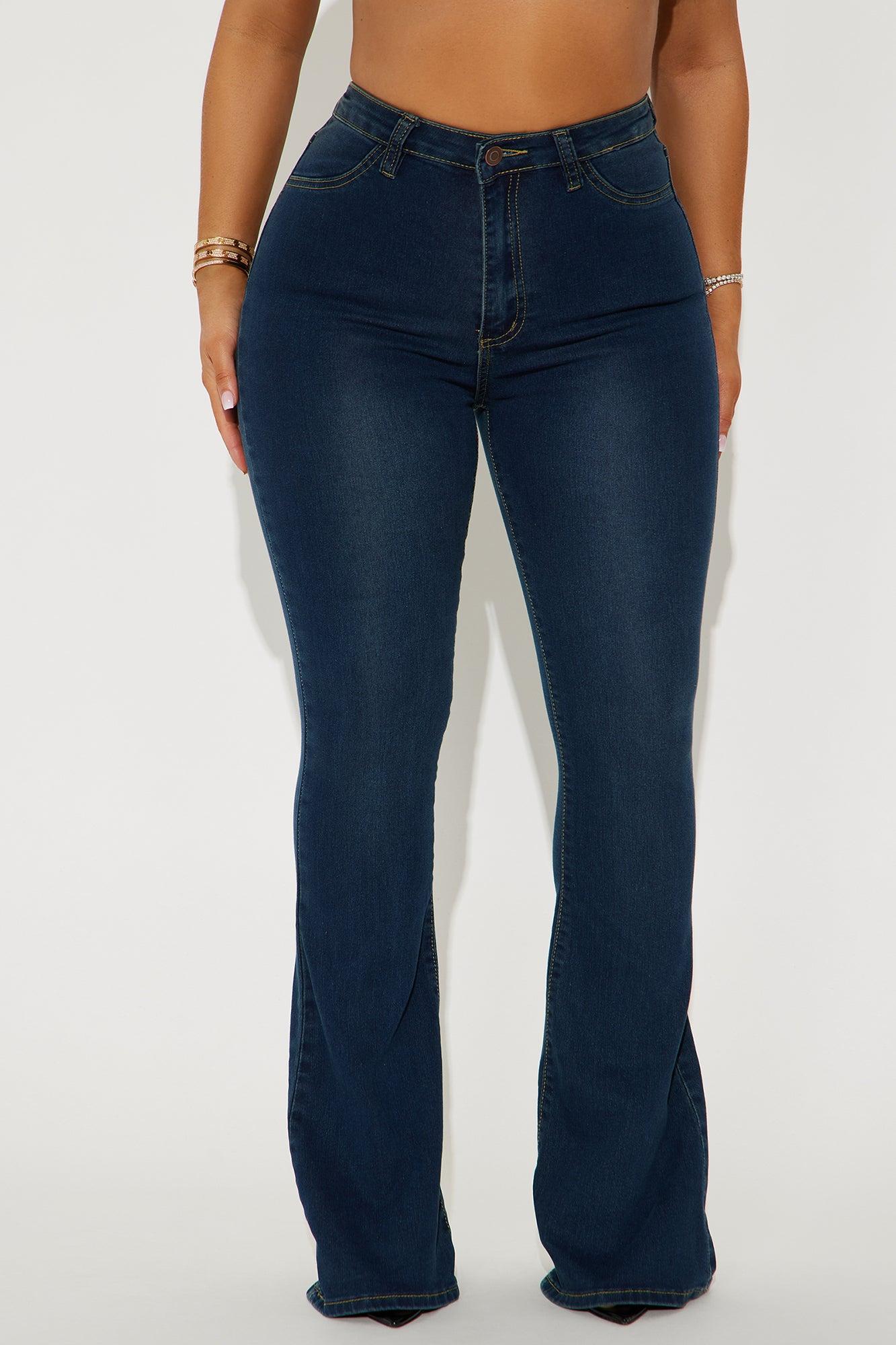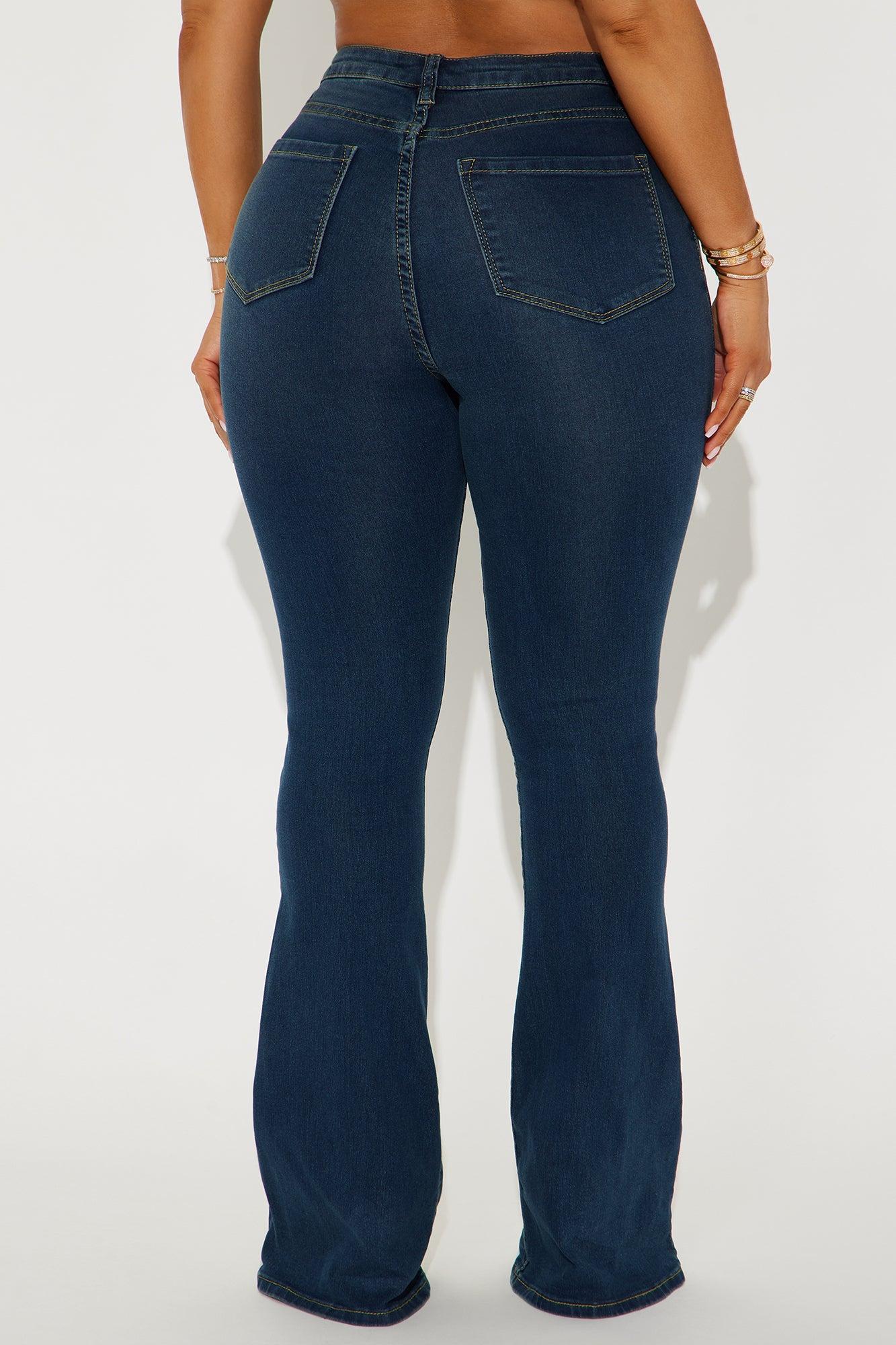 Available In Dark Denim. High Stretch Denim Faux Front Pockets Functional Back Pockets 22" Flare Leg Opening 34" Inseam 11.5" High Rise Disclaimer: Due To The Specialized Wash Process, Each Garment Is Unique. 58% Cotton 40% Polyester 2% Spandex Imported California Proposition 65 WARNING: Cancer and Reproductive Harm - www.P65Warnings.ca.gov.