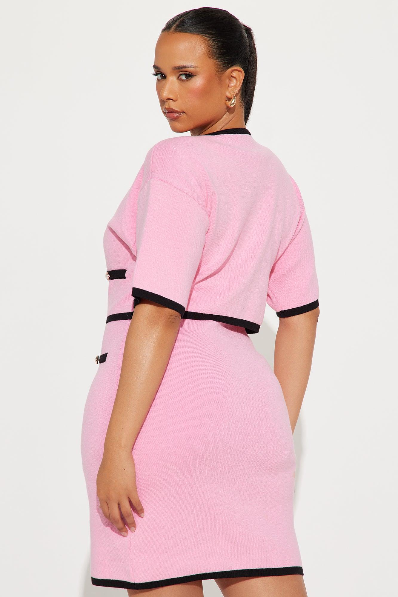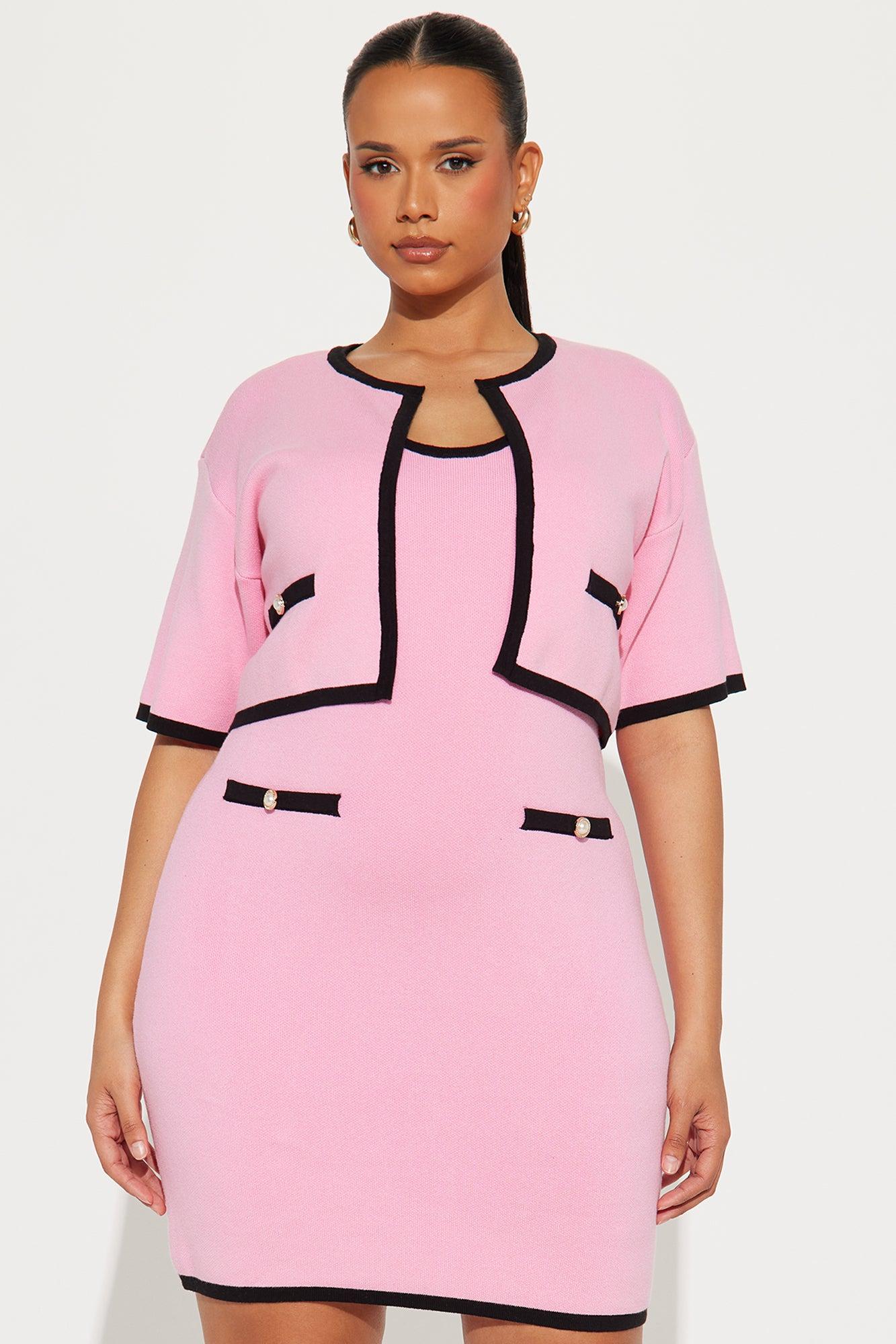 Available In Pink/combo. Sweater Mini Dress Set Scoop neckline Sleeveless Includes cropped cardigan Faux pockets Contrast trim Stretch Length measured flat = 35" Self / Contrast 100% Cotton Imported California Proposition 65WARNING: Cancer and Reproductive Harm - www.P65Warnings.ca.gov.