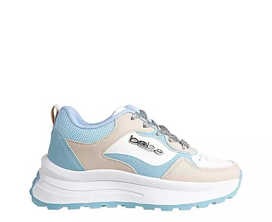 bebe Eva Womens Sneaker Blue/Multicolor Upgrade your Sneaker style with the bebe Eva Sneaker. With a color-blocked faux leather upper featuring a sleek bebe logo hardware detail, this Shoe gives a nostalgic feel with its silhouette. The heel pull tab ensures easy entry, while the Padded footbed and traction outsole offer all-day support. Synthetic upper Lace-up closure Heel pull tab Padded footbed Traction outsole
