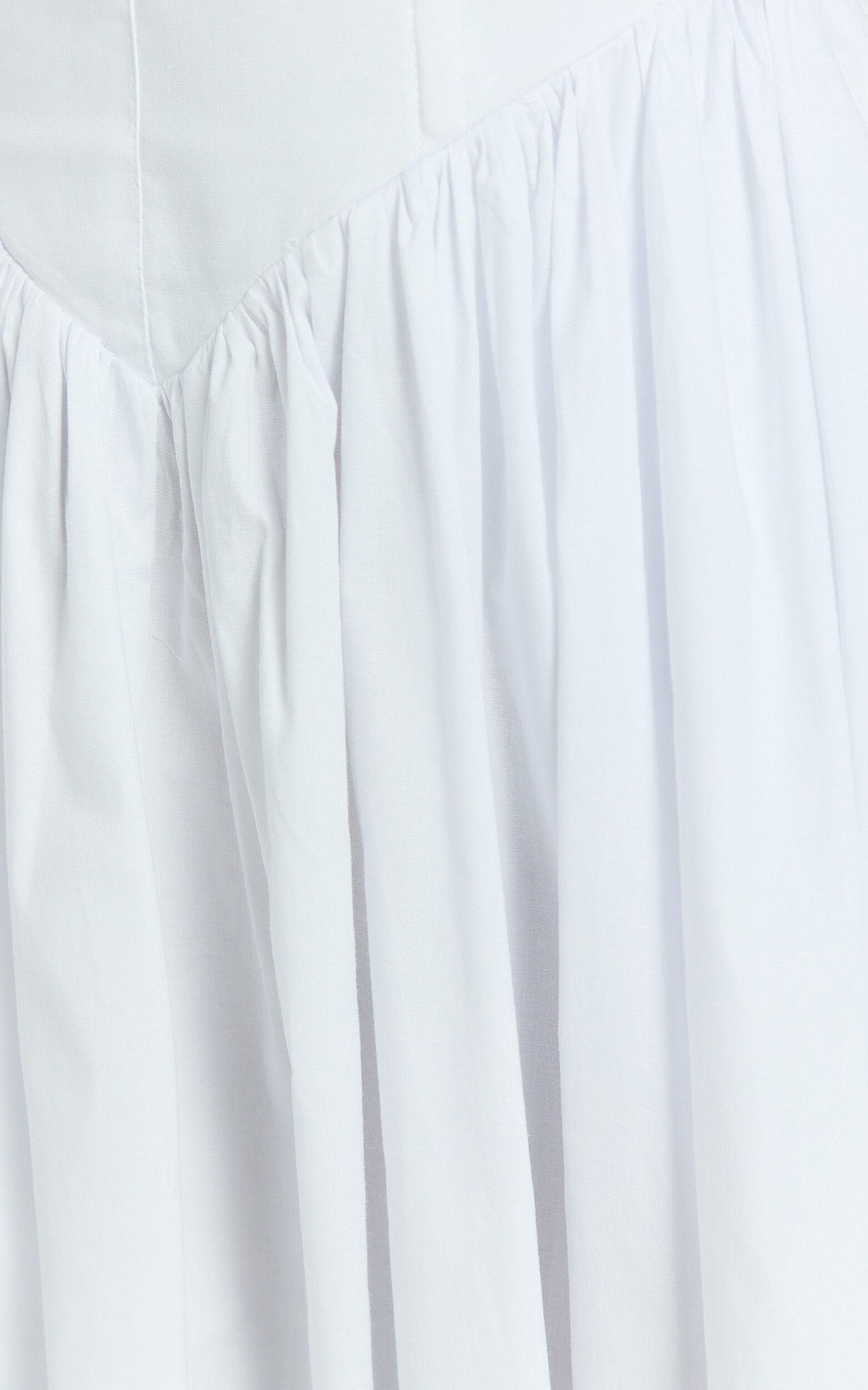 Beckett Midi Dress - Scoop Neck Drop V Waist Gathered Skirt Dress in White