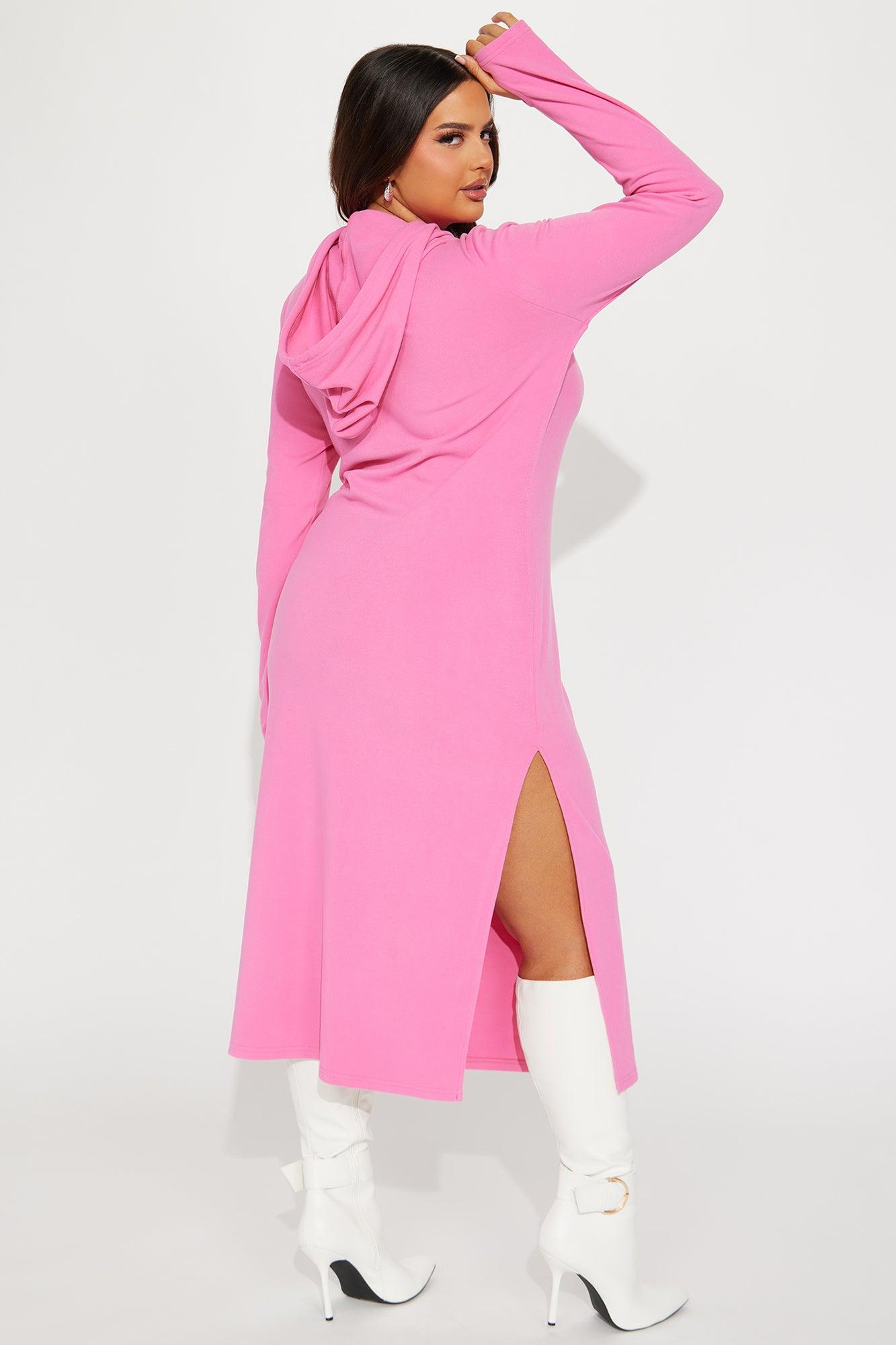 Becky Hooded Midi Dress - Pink