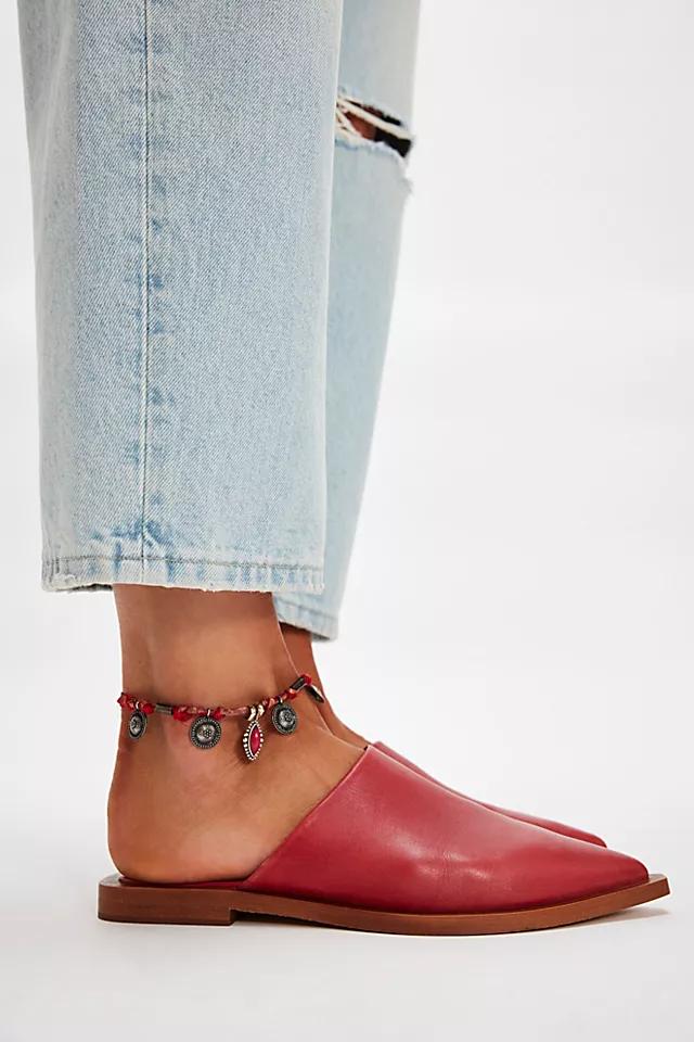 **Features:** Slip-on design, leather uppers, pointed toe, flat leather outsole, gore inlays,