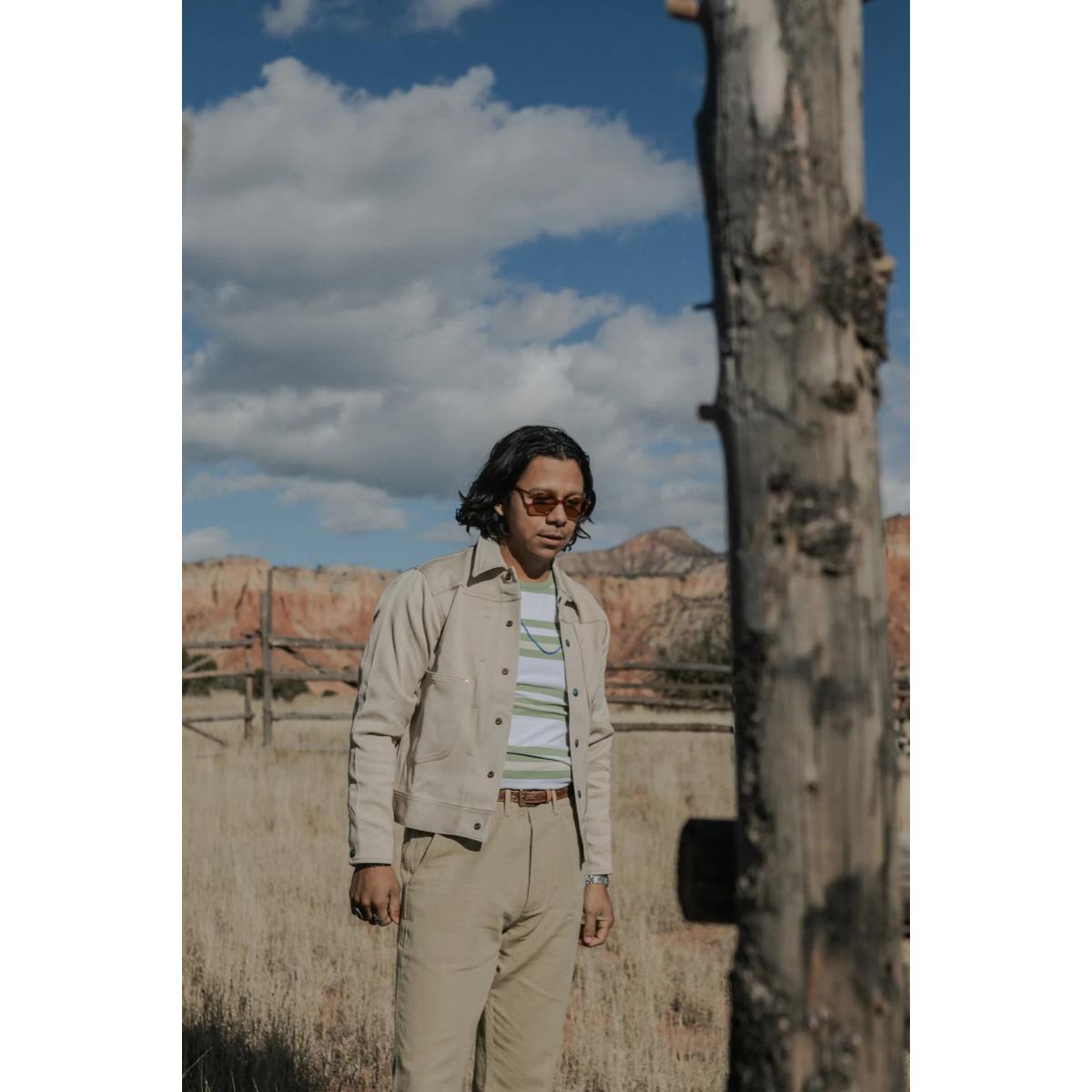 The ranch jacket is one of their favorite creations. Based off of old denim jackets from the Wythe westernwear archives, they designed the jacket to hit at the high-hip. These aren't a particularly slim fit, but closer to an athletic fit. Treat this jacket like you would your favorite denim trucker. Wear the hell out of it - bedford cord is an extremely hard-wearing fabric. This particular bedford cord is just what they were looking for. It's woven on vintage selvedge loom by a Japanese mill that specializes in weaving this fabric, exactly like it used to be made in the 40s and 50s. It's one of the only fabrics this mill produces. This fabric will stretch, so don't worry if the jacket feels a bit tight when you first try put it on. Shorter length designed to sit at the high-hip Snap cuffs Snap front with bar-tacked forward pleats Two hand pockets in the signature Wythe shape Custom aged steer head snaps Custom raw copper rivets Made in the USA of Japanese fabric Machine wash on cold, hang dry/dry low S M L XL XXL SLEEVE 23.75 24 24.5 25 25.4 CHEST 19.5 20.75 21.5 22.75 23.5 LENGTH 24.6 25.25 25.6 26 26.75 SHOULDER 17.5 18 18.4 19 19.5
